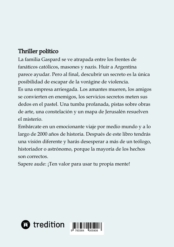 | Schlagworte | Biblia • Fascismo • francmasones • Fuga de criminales de guerra • Heinrich Himmler • Incendio de la biblioteca de Lovaina (Bélgica) • Jesus • María Magdalena • Opus Dei • Papa Adriano VI • Propaganda Due • Santa María Magdalena, Zaragoza • Segunda Guerra Mundial • servicios secretos • Vaticano |