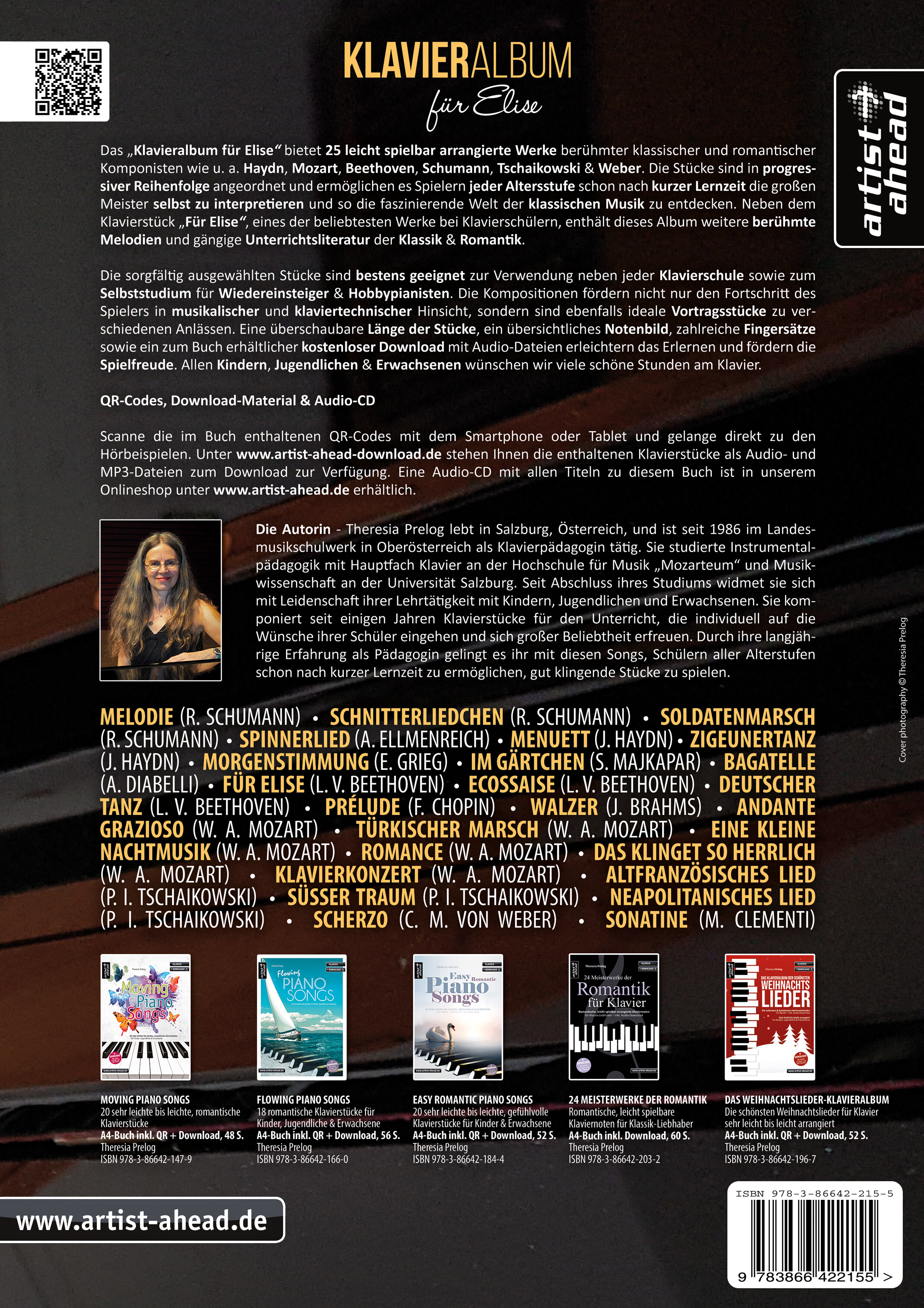 Scanne die im Buch enthaltenen QR-Codes mit dem Smartphone oder Tablet und gelange direkt zu den Hörbeispielen. Unter artist-ahead-download.de stehen Ihnen die Klavierstücke als Audio- und MP3-Dateien zum kostenlosen Download zur Verfügung. Eine Audio-CD mit allen Titeln zu diesem Buch ist in unserem Onlineshop unter artist-ahead.de erhältlich.