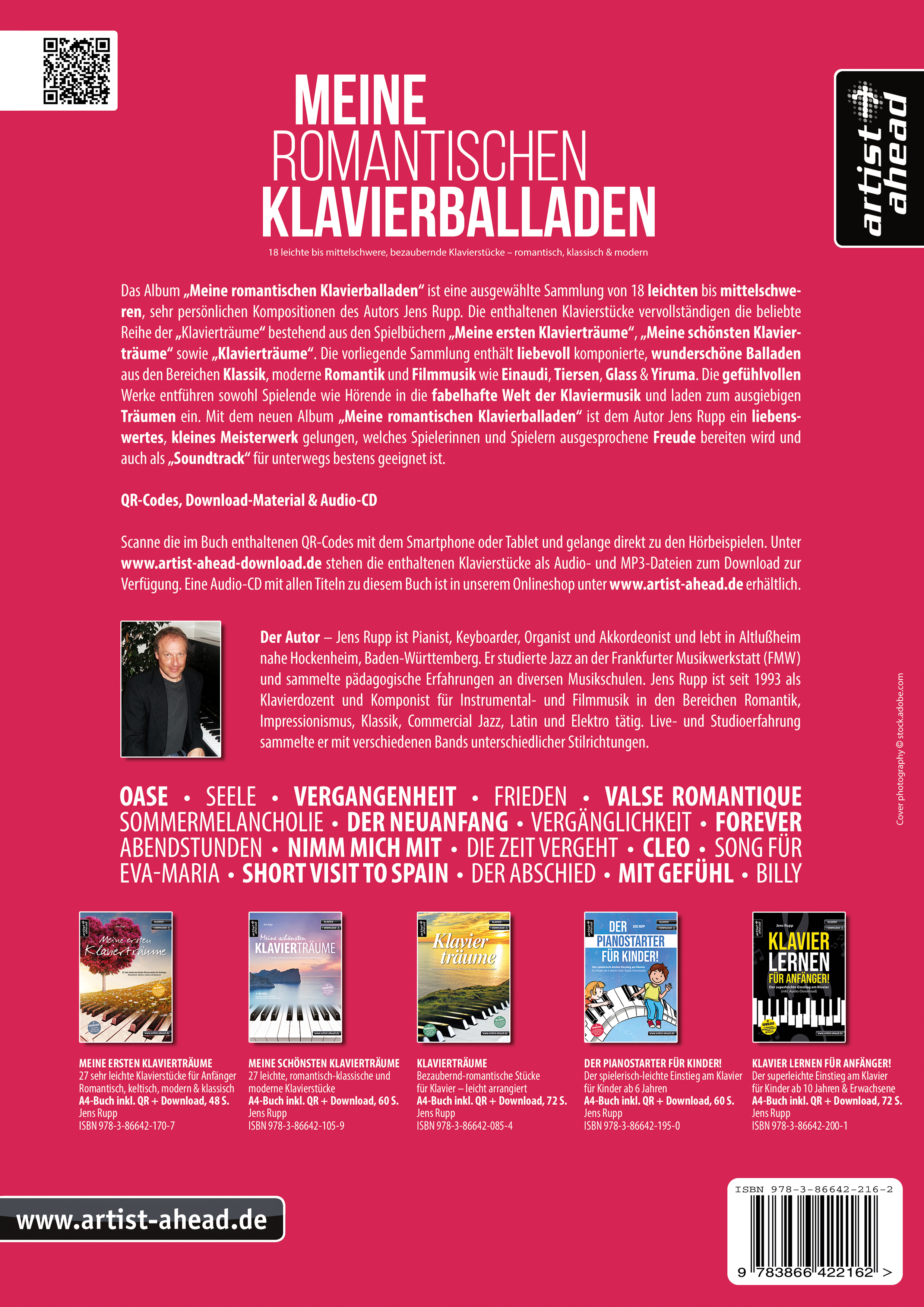 Scanne die im Buch enthaltenen QR-Codes mit dem Smartphone oder Tablet und gelange direkt zu den Hörbeispielen. Unter artist-ahead-download.de stehen Ihnen die Klavierstücke als Audio- und MP3-Dateien zum kostenlosen Download zur Verfügung. Eine Audio-CD mit allen Titeln zu diesem Buch ist in unserem Onlineshop unter artist-ahead.de erhältlich.