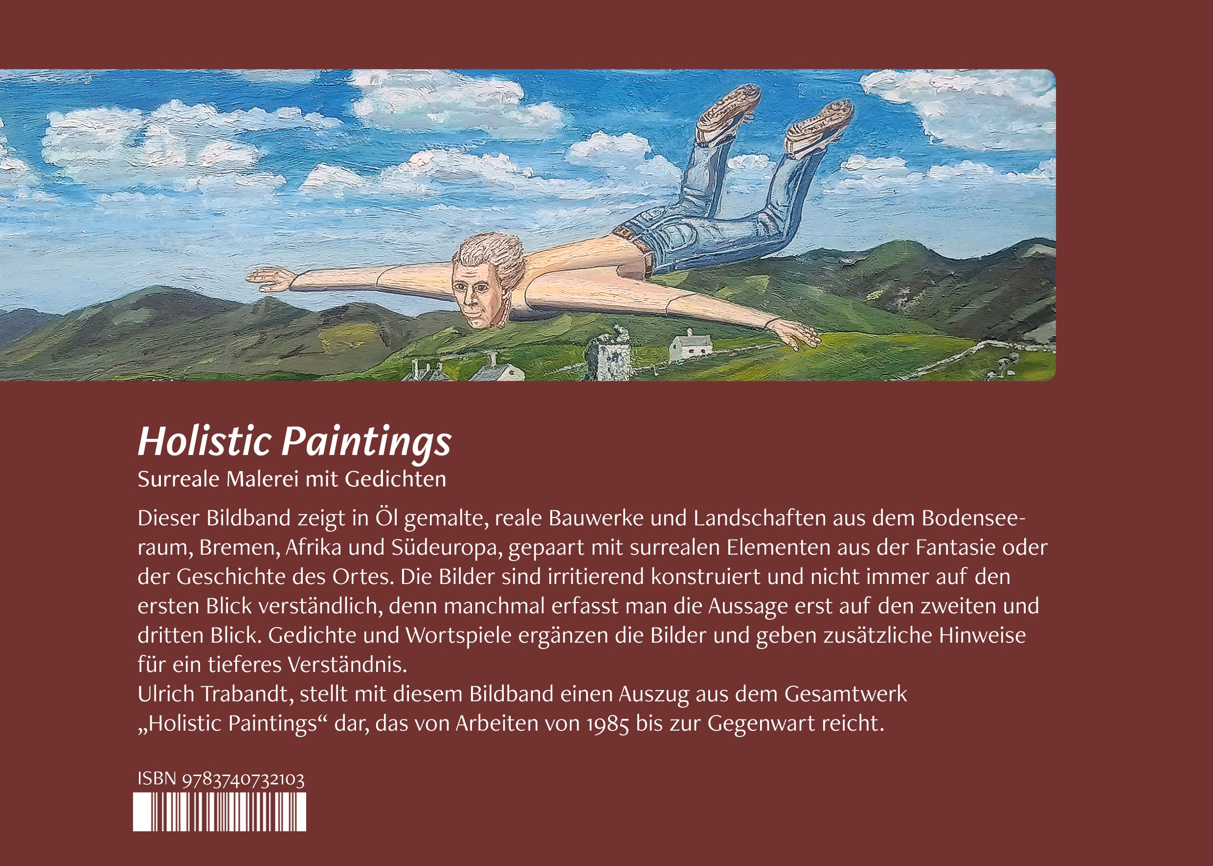 Die holistic paintings, wie sie der Autor versteht, versucht die jeweiligen Pole der Malerei als Einheit auszudrücken: Materielle Welt und Mystik, Real und Surreal, Traum und Wirklichkeit, Bild und Wort, Vergangenheit, Gegenwart und Zukunft, Universum und Daheim, letztlich Alles und Nichts.