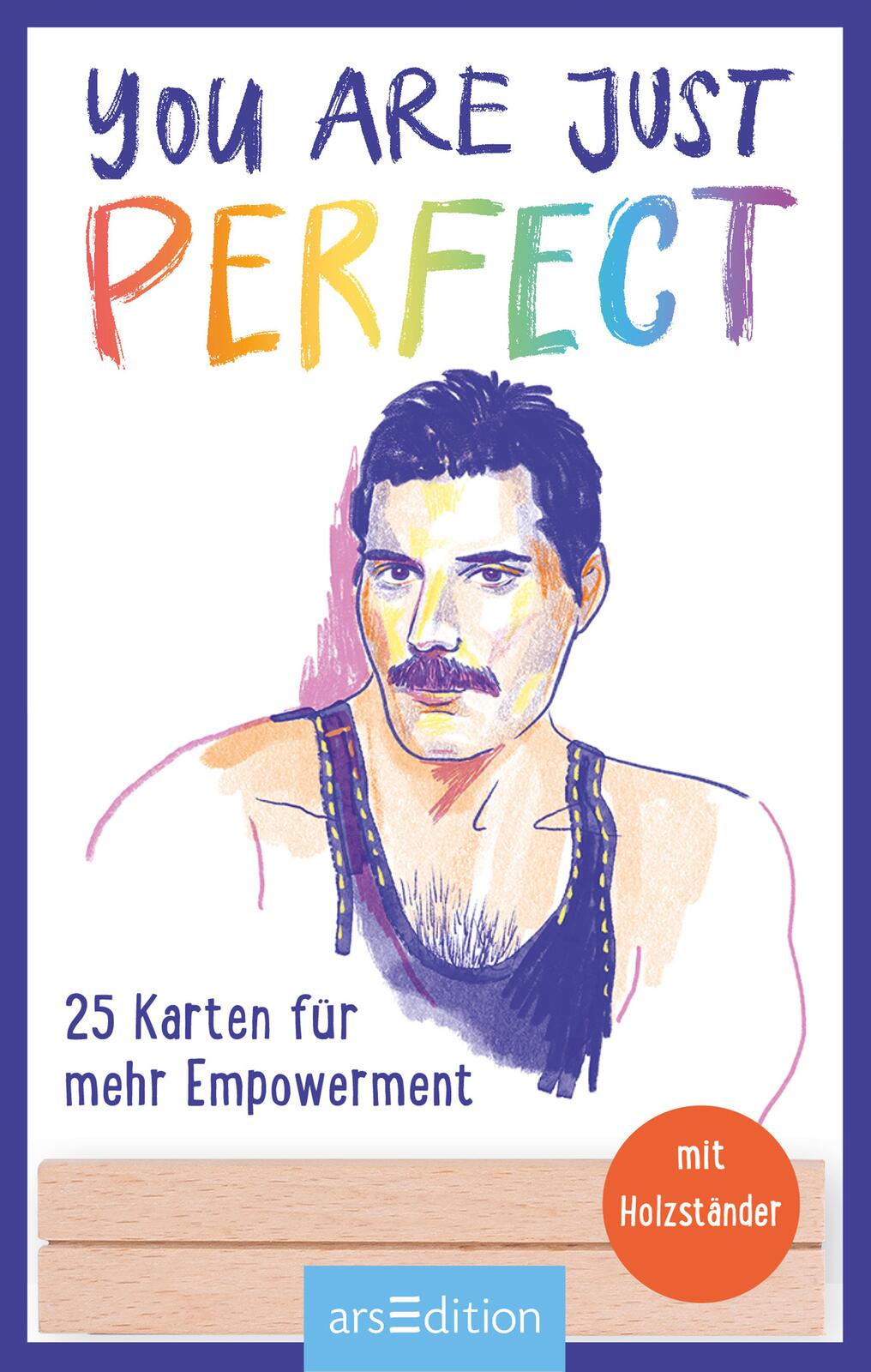 Wir alle sind bunt und wild und wunderbar. Ikonen wie Freddy Mercury, Marsha P. Johnson und Virginia Woolf gehen mit bestem Beispiel voran! Diese und andere fabelhafte, bunte Persönlichkeiten hat die Illustratorin Sarah von der Heide zum Leben erweckt. Auf stabilen, gut beschreibbaren Grußkarten, die durch den hochwertigen Holzständer zu einer schönen Schreibtischdeko werden. 25 großartige, queere Leute mit inspirierenden Sprüchen schenken dir Mut und erinnern dich daran: Jede:r von uns ist einzigartig. Und das ist auch gut so!