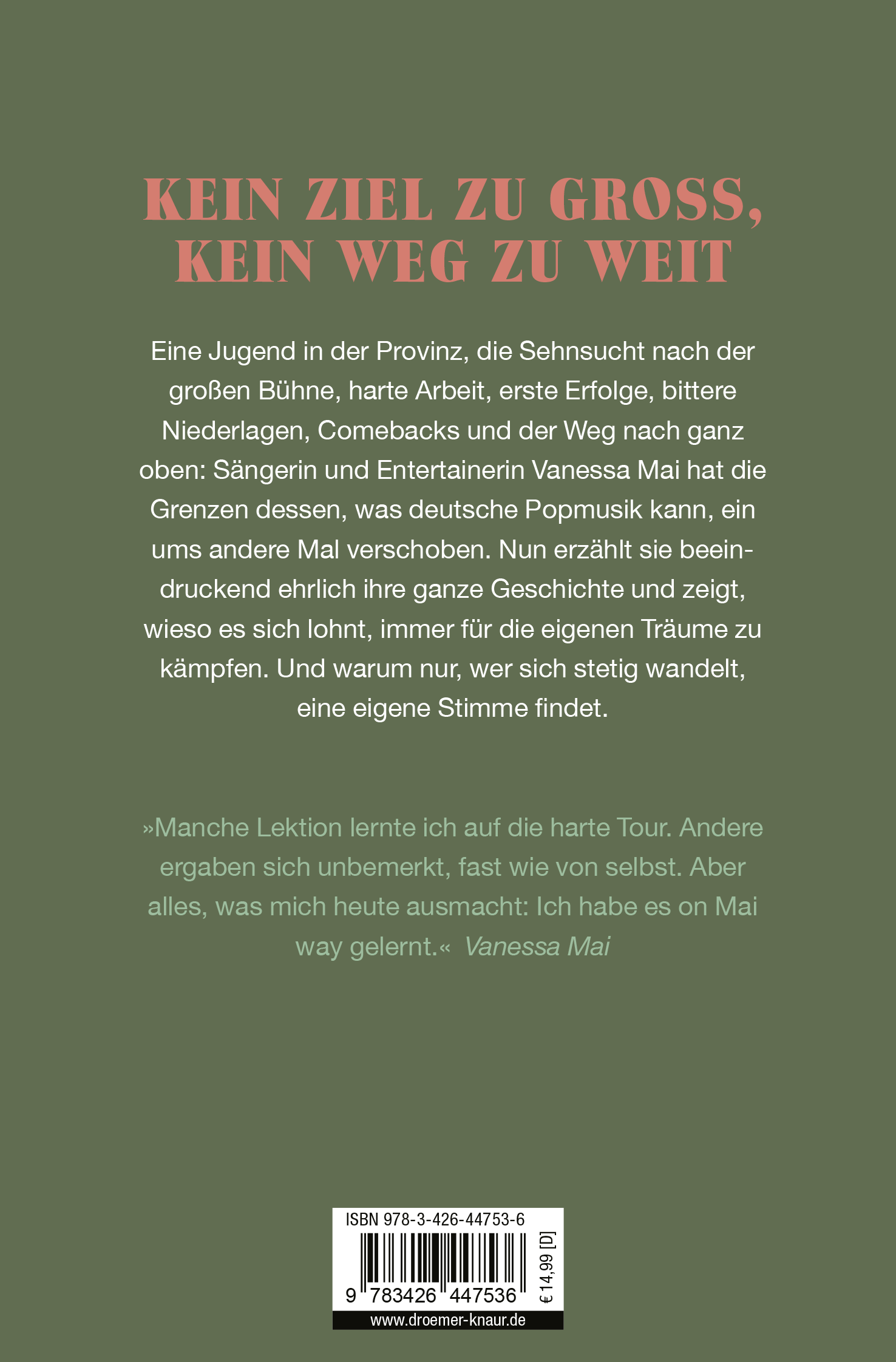 Die Sehnsucht nach der großen Bühne, harte Arbeit, erste Erfolge, bittere Niederlagen, Comebacks und der Weg nach ganz oben: Vanessa Mai legt beeindruckend ehrlich ihre ganze Geschichte offen und zeigt, warum es sich lohnt, für die eigenen Träume zu kämpfen.