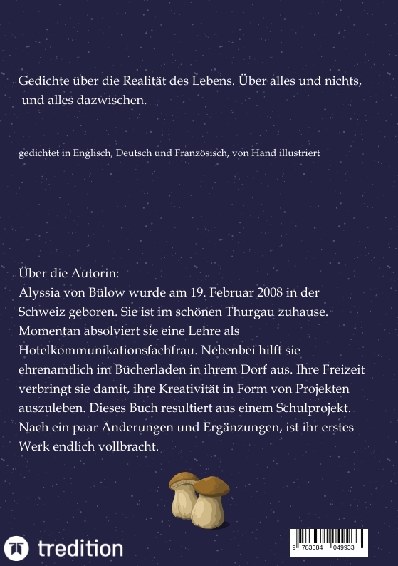 Tiefgründige Gedichte in verschiedenen Sprachen, rund um meine Gefühle und Erfahrungen in diesem Leben. Einige Gedichte sind illustriert. Wenn du nach etwas suchst, das dir das Gefühl gibt verstanden zu sein, ist dieses Buch das Richtige.
