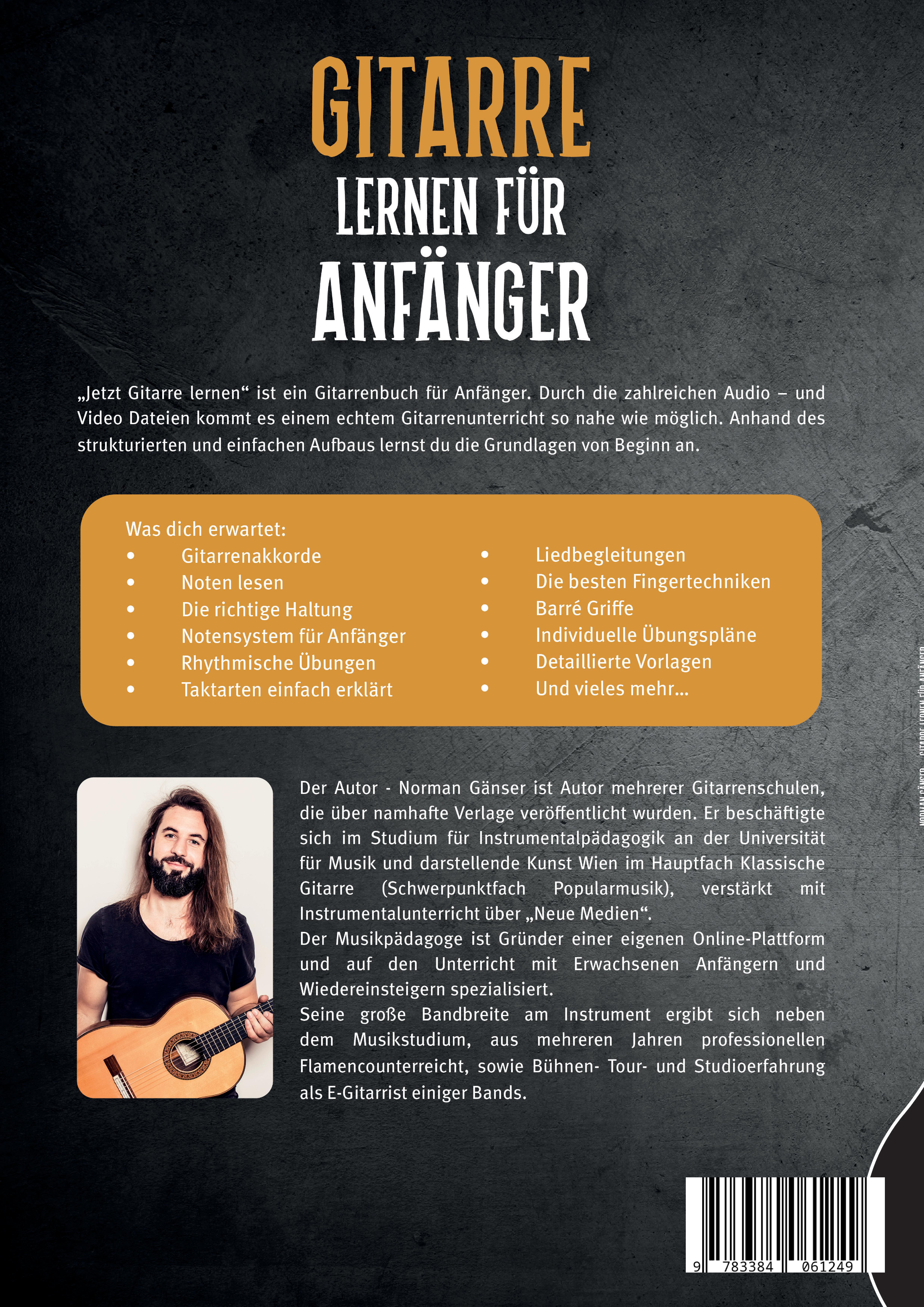 Norman Gänser ist Autor mehrerer Gitarrenschulen. Er beschäftigte sich im Studium für Instrumentalpädagogik an der Universität für Musik und darstellende Kunst Wien im Hauptfach Klassische Gitarre (Schwerpunktfach Popularmusik), verstärkt mit Instrumentalunterricht über „Neue Medien“. Als Gründer seiner eigenen Online-Plattform ist der Musikpädagoge auf den Unterricht mit Erwachsenen Anfängern und Wiedereinsteigern spezialisiert. Seine große Bandbreite am Instrument ergibt sich neben dem Musikstudium, aus mehreren Jahren professionellen Flamencounterreicht, sowie Bühnen- Tour- und Studioerfahrung als E-Gitarrist einiger Bands.