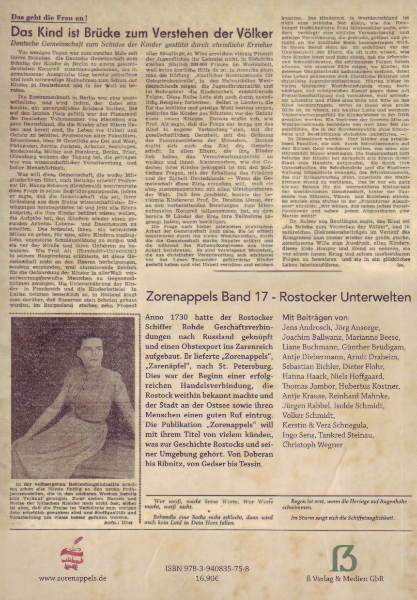 17. Band der beliebten Reihe (Rostocker) Zorenappels mit erlebten und recherchierten Beiträgen.