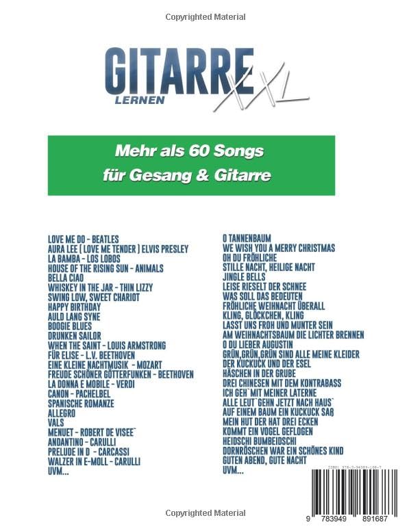 Mit Gitarre lernen XXL kannst du eine breite Palette von Songs und Liedern spielen, angefangen bei zeitlosen Pop- und Evergreens bis hin zu klassischen Stücken, Volks- und Kinderliedern sowie festlichen Weihnachtsliedern. Die Vielfalt dieser Songs ist einzigartig, um verschiedene Genres und Stile zu entdecken.