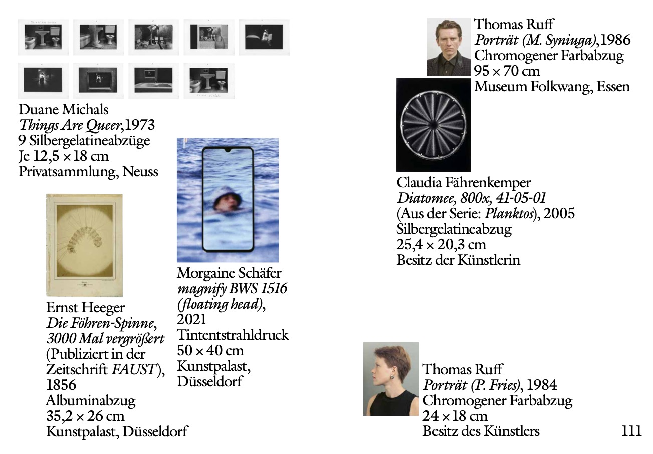 Mit Arbeiten u. a. von Bernd und Hilla Becher, Andreas Gursky, Duane Michals, Seth Price, Katharina Sieverding, Wolfgang Tillmans und Kathrin Sonntag. Die Essays schrieben neben der Kuratorin der Ausstellung Linda Conze: Tomás Dvorák, Ellen Haak, Lilian Haberer, Vera Knippschild, Oliver Lugon, Bettina Papenburg, Kathrin Schönegg, Anja Schürmann, Steffen Siegel und Vera Tollmann. Mit einem Auszug aus einem Gespräch zwischen Thomas Ruff und Florian Ebner.