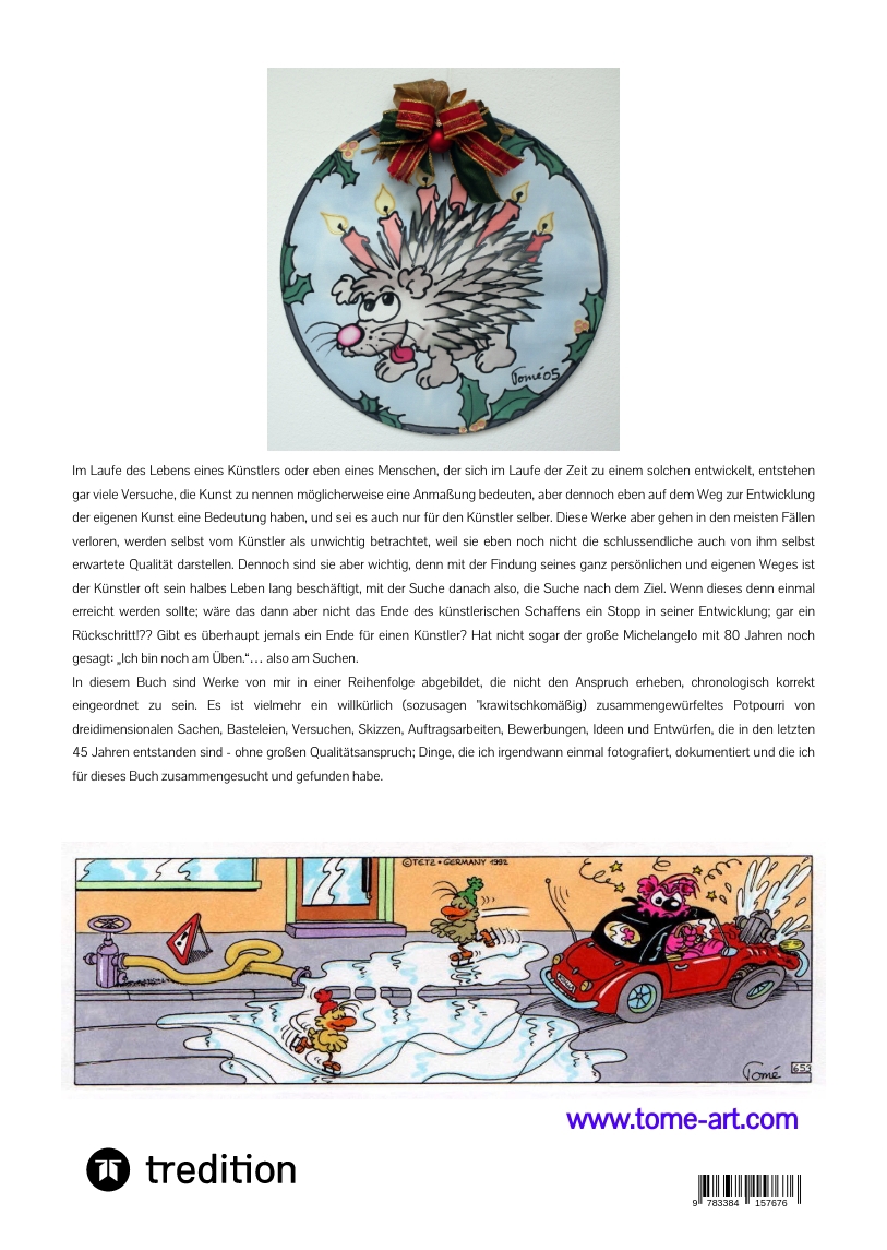 Tomé Thomas Etzensperger, 1958 in Zürich geboren, studierte zunächst Medizin, bevor er als Graphik-Designer seine Comics und Cartoons in vielen Zeitungen in den USA, Deutschland und der Schweiz veröffentlichte. Er arbeitete als Kunst-, Sport- und Ethiklehrer an drei Schulen und lebt mit seiner Frau und den beiden Söhnen in Augsburg. Mit seinem 2011 eröffneten Kinderporträt-museum engagiert sich Tomé mit Ausstellungen und Aktionen für die Kinderrechte. Er hat in den letzten Jahren über 5´400 Kinder gezeichnet. Wer mehr darüber lesen, sehen oder sein Kind zeichnen lassen möchte, findet alle Informationen und ein Kontaktformular auf: www.tome-art.com Tomé Thomas Etzensperger, born in Zurich / Switzerland in 1958, initially studied medicine. However, drawing was something of a cradle, and so he quickly turned his hobby into a profession. During his studies as a communication designer, he developed many funny cartoon characters. His comic strip “PiPO” has been featured in many daily newspapers in Germany, the USA and Switzerland. He was an art, sports and ethics teacher at three schools and is involved with his Children’s Portrait Museum, which he founded in 2011 to give children a platform here, with exhibitions and activities for children’s rights. Tomé is also known for his “red hand” painting project against child soldiers. He has drawn more than 5,400 children in recent years. Contact: www.tome-art.com
