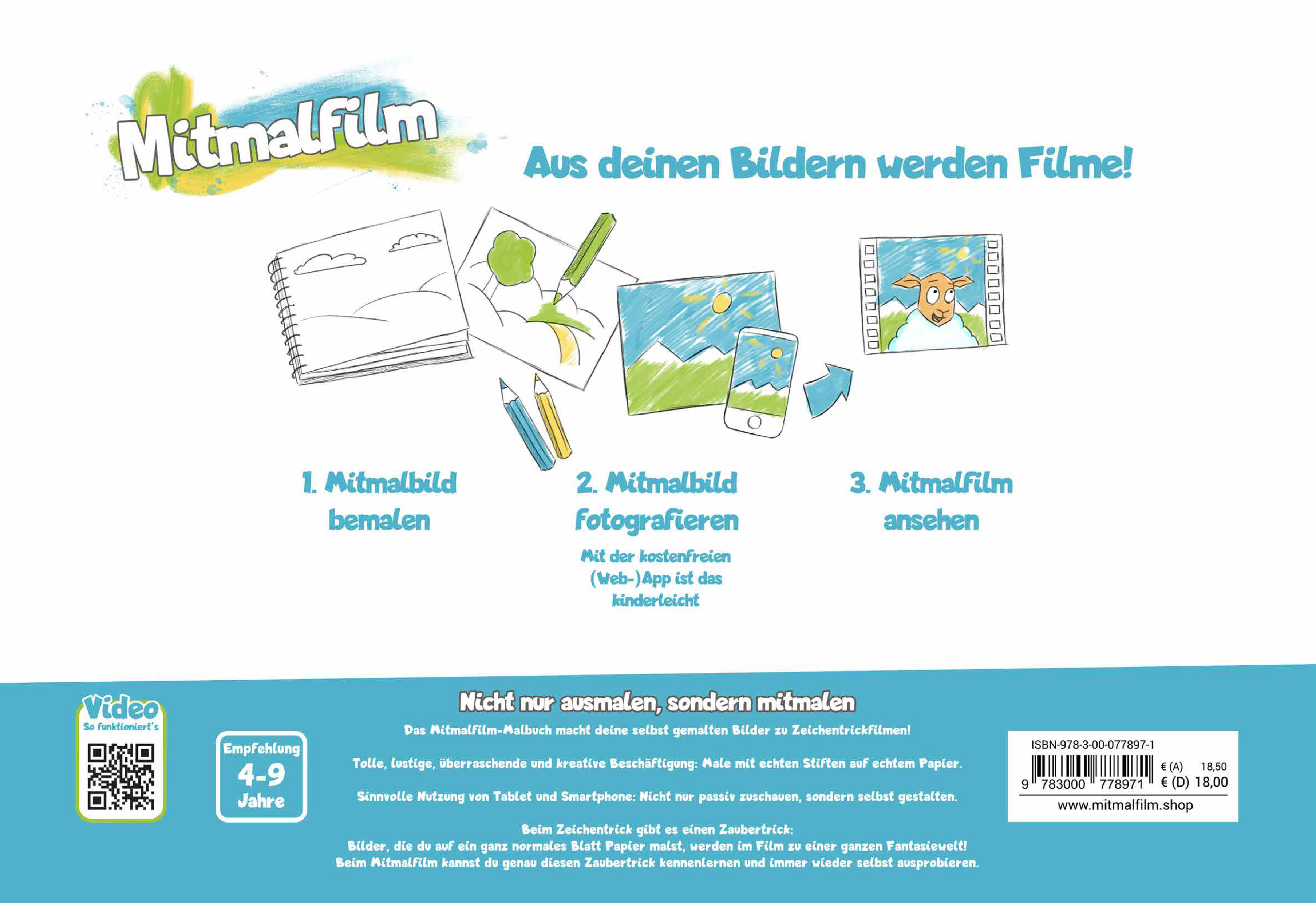 In lustigen Bildergeschichten lernen wir die Figuren kennen, die auch in den Filmen vorkommen. Zu jeder Geschichte gibt es dann 1-3 Malvorlagen, die bemalt und dann ganz einfach per Smartphone gescannt werden können. Mit der gratis Mitmalfilm-App oder einfach im Browser. Die Verwandlung in einen Film dauert nur 1-2 Minuten. Dann heißt es, Film ab!