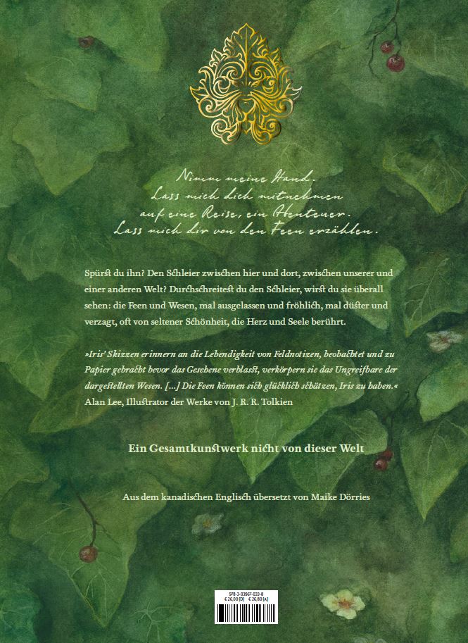 »Iris Skizzen erinnern an die Lebendigkeit von Feldnotizen, schnell beobachtet und zu Papier gebracht, bevor das Gesehene verblasst, und verkörpern gleichzeitig das Ungreifbare der dargestellten Wesen. [...] Die Feen können sich glücklich schätzen, sie zu haben.« Alan Lee, Illustrator der Werke von J.R.R. Tolkien