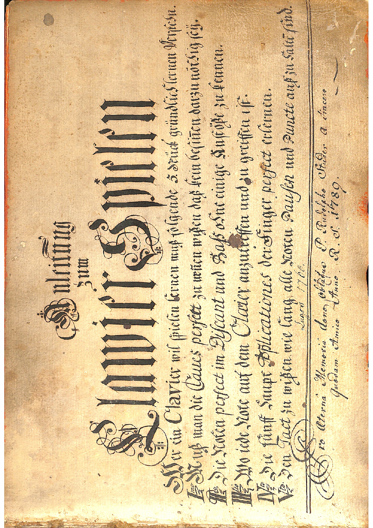 Die vorliegende handschriftlich erhaltene Klavierschule entstand im Jahre 1760 in der Banater Stadt Lugosch (damals Ungarn, ab 1919 Rumä-nien) und wurde im Laufe der nächsten Jahre fortgesetzt. Diese wurde durch einen Mönch des Lugoscher Minoritenklosters verfasst – vermutlich von P. Rudolpho Studer. Nachdem im Jahre 1718 die römisch-katholische Pfarrei gegründet wurde, übernahmen die Fratres Minores (Franziskaner-orden der Minderen Brüder, Minoriten) die Betreuung der Pfarrei. Auf der Titelseite der Klavierschule befindet sich der Eintrag „Lugos 1760“ und weiter unten die Jahreszahl 1789. Die Abschriften der 94 Klavierstücke stammen größtenteils von ein und derselben Person.