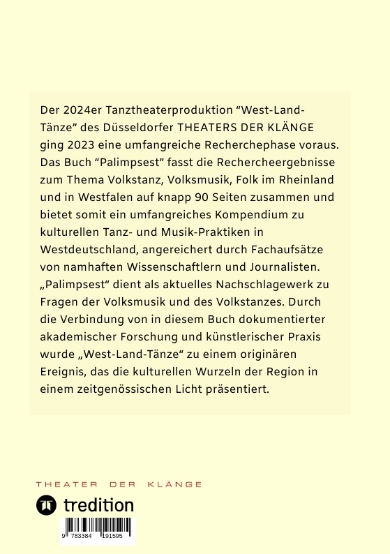 Nach intensiver Forschung und umfangreicher Recherche kann nun verkündet werden, dass die Suche nach den verlorenen Volkstänzen und Volksmusiken im Rheinland und in Westfalen erfolgreich abgeschlossen ist. Die Erkenntnisse und Ergebnisse dieser langen und tiefgreifenden Untersuchungen wurden in einem Buch zusammengefasst, das als wegweisendes Kompendium für die Erhaltung und Wiederbelebung dieser kulturellen Schätze dient.Das Buch präsentiert nicht nur die historischen Hintergründe und Entwicklungen der Volkstänze und Volksmusiken in der Region Westdeutschlands, sondern bietet auch eine Fülle von Materialien, die es ermöglichen, diese Traditionen kennezulernen, zu verstehen und wiederzubeleben. Durch die sorgfältige Sammlung schriftlicher Aufzeichnungen, grafischer Notationen, verbaler Beschreibungen sowie über Weblinks auch Audio- und Videoaufnahmen können die einst verloren geglaubten Tänze und Melodien nun wieder zum Leben erweckt werden.Die Autoren des Buches haben es geschafft, ein breites Spektrum an Informationen zusammenzutragen, das von den Ursprüngen der Volkstänze bis hin zu ihren modernen Interpretationen reicht. Dabei wurden nicht nur die musikalischen und choreografischen Aspekte beleuchtet, sondern auch die kulturellen und gesellschaftlichen Kontexte, die diese Traditionen geprägt haben.Besonders bemerkenswert ist die Vielfalt der gefundenen Materialien, die Einblicke in die unterschiedlichsten Tanz- und Musikstile der Region gewähren. Von lebhaften Dorffesten bis hin zu feierlichen Zeremonien wurden viele Facetten des Volkstanzes und der Volksmusik dokumentiert und analysiert.Das Buch richtet sich nicht nur an Wissenschaftler und Forscher, sondern auch an Tanz- und Musikliebhaber, die sich für die reiche kulturelle Vielfalt ihrer Region interessieren. Es dient als inspirierende Quelle für Musiker, Tänzer und Choreografen, die sich mit der Wiederbelebung und Weiterentwicklung dieser traditionellen Kunstformen beschäftigen möchten.Dank der umfangreichen Dokumentation und Aufzeichnungen können die Volkstänze und Volksmusiken des Rheinlands und von Westfalen nun für zukünftige Generationen bewahrt und erlebbar gemacht werden. Das Buch markiert einen Meilenstein in der Erforschung und Erhaltung dieser wertvollen kulturellen Erbgüter und wird zweifellos dazu beitragen, ihr Erbe lebendig zu halten.Das im Buch gesammelte Recherchematerial diente 2023/24 als Grundlage für die Entwicklung der Tanztheaterproduktion "West-Land-Tänze" des Düsseldorfer Theaters der Klänge.