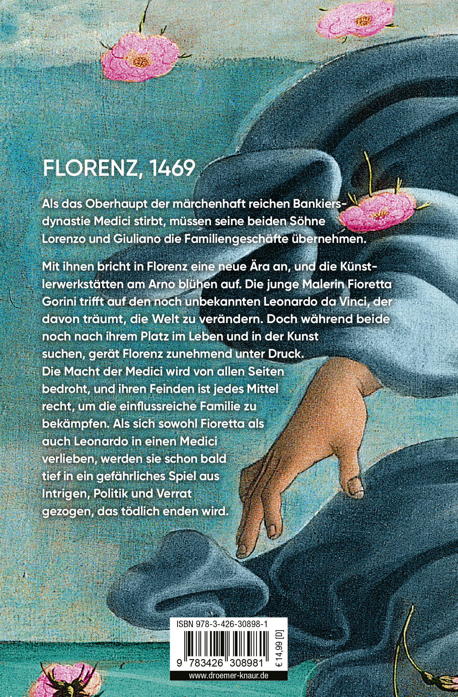 Drei der Hochzeitsgäste - Giuliano de' Medici, der ewig Zweitgeborene; die aufstrebende Malerin Fioretta Gorini und der junge, noch unbekannte Leonardo da Vinci - ahnen noch nicht, wie eng ihre Schicksale mit dem der Stadt verknüpft sind. Denn während die drei nach ihrem Platz in der Welt suchen, wird Florenz schon bald von allen Seiten bedroht, und den Feinden der Medici ist jedes Mittel recht, die Familie zu bekämpfen.