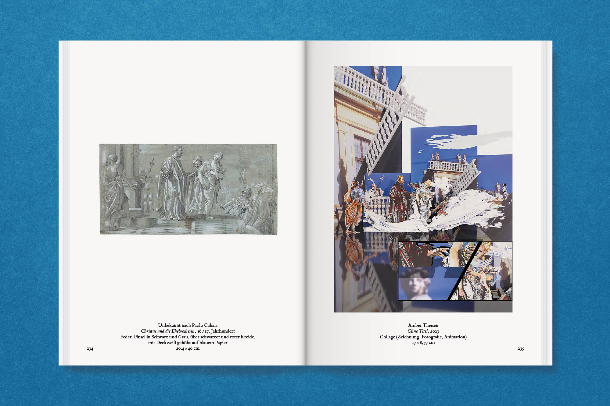 Durch das Nebeneinander der Arbeiten ergibt sich so ein multipler Blick auf die eigene Sammlung und ein vielfältiges Wechselspiel zwischen aktuellen Arbeiten junger Künstler*innen und historischen Werken früherer Jahrhunderte. Herausgekommen ist eine ungewöhnliche Publikation – halb Künstlerbuch, halb Sammlungsverzeichnis –, die zu einem neuen, vergleichenden Sehen einlädt. In 2023, the Kunstakademie Düsseldorf celebrated its 250th anniversary. In honor of this special occasion, a series of projects and events was organized. The anniversary also served as an opportunity to rediscover two collections of the Kunstakademie: the Collection of Prints and Drawings, which contains a vast number of works by artists from the 15th, 16th, 17th, and 18th centuries, as well as the Neue Sammlung (New Collection) with works by professors since 1945. The Collection of Prints and Drawings already played a crucial role in 1773 when the Kunstakademie was founded. Although it contains numerous masterpieces, it was conceived as a collection for teaching: the sketches, revisions, and completed works were intended to show students the process of how art is created. Currently, the collection comprises around 40,000 pieces. Since 1932, it has been on permanent loan to the Kunstmuseum Düsseldorf, now the Kunstpalast.