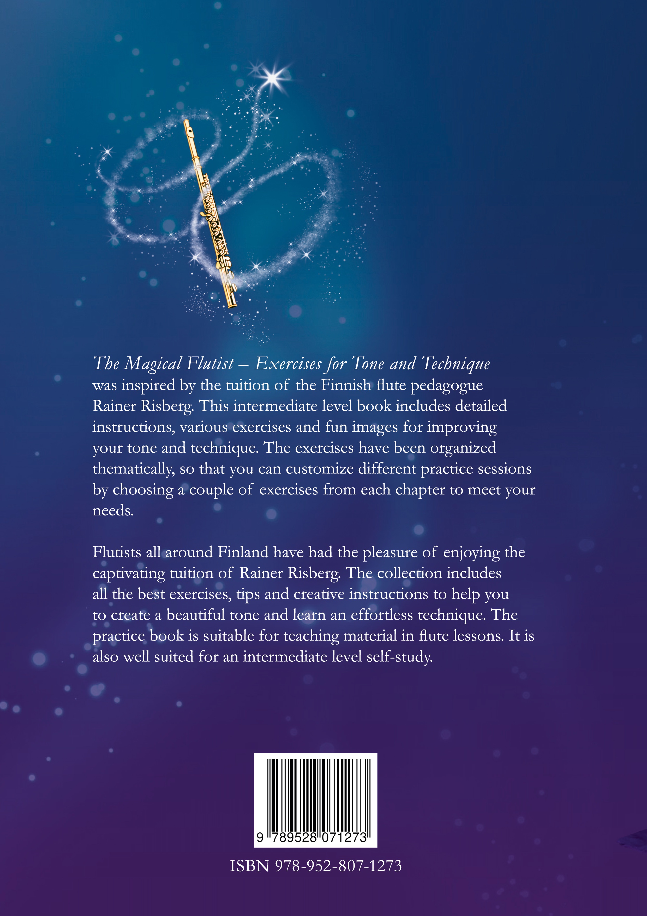 The Magical Flutist - Exercises for Tone and Technique was inspired by the tuition of the Finnish flute pedagogue Rainer Risberg. This intermediate level book includes detailed instructions, various exercises and fun images for improving your tone and technique. The exercises have been organized thematically, so that you can customize different practice sessions by choosing a couple of exercises from each chapter to meet your needs. Flutists all around Finland have had the pleasure of enjoying the captivating tuition of Rainer Risberg. The collection includes all the best exercises, tips and creative instructions to help you to create a beautiful tone and learn an effortless technique. The practice book is suitable for teaching material in flute lessons. It is also well suited for an intermediate level self-study.