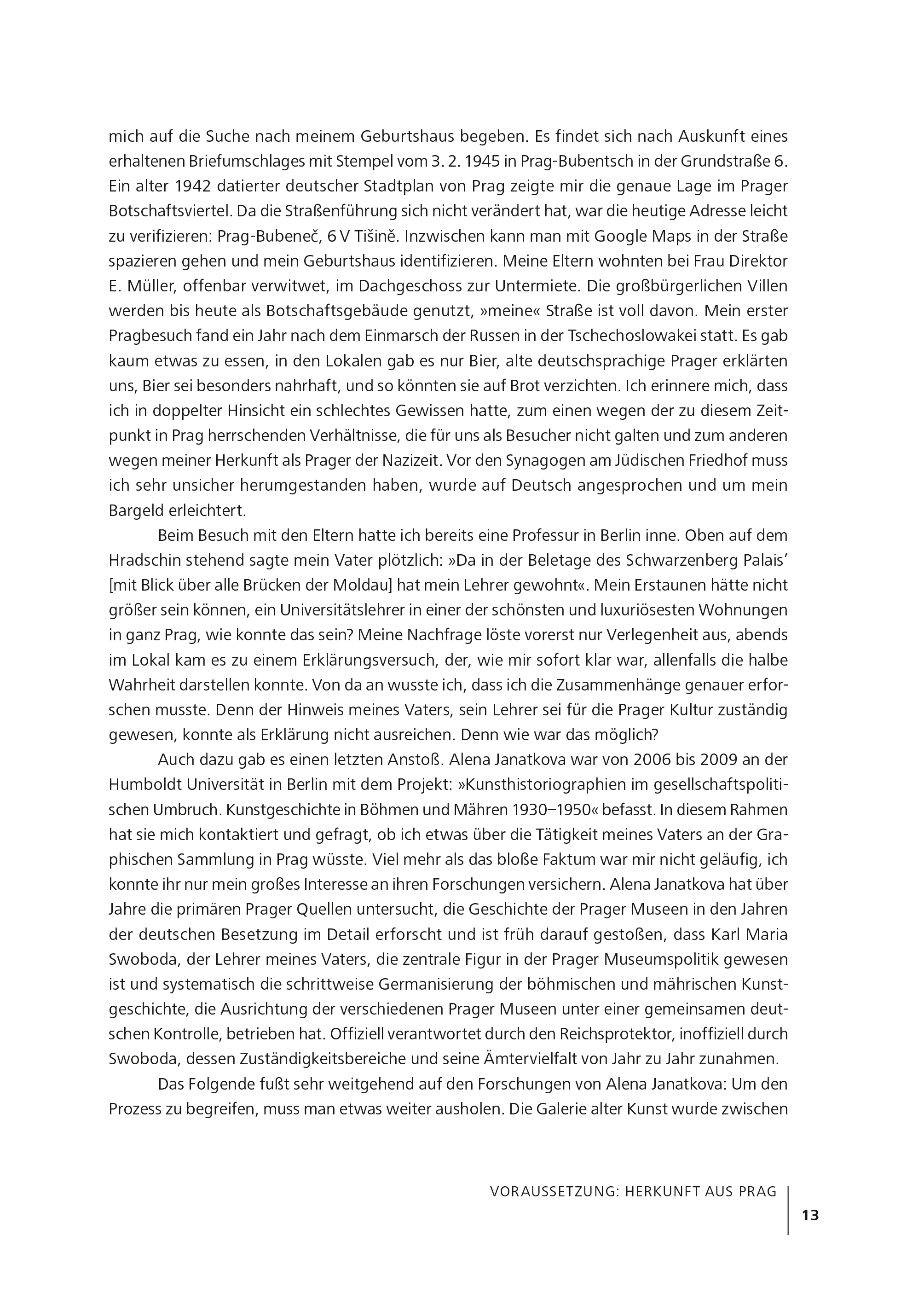 Ein Buch, geschrieben auf der Basis persönlicher Begegnungen mit Emigranten der Kunstgeschichte, die fast ausschließlich jüdischer Herkunft waren. Neben der Emigrationsgeschichte steht der Umgang mit Kunst im Zentrum. Es kommt zu Treffen mit Universitätslehrern und Museumskuratoren, mit Sammlern und Händlern. Mit Erfolgreichen, aber auch mit jenen, die an den Verhältnissen scheiterten und dennoch versuchten, eine Form der Existenz zu finden. Voraussetzung für dieses Buch war das eigene Geburtsdatum und der Geburtsort: Prag 1944. Was ließ sich über die Zeit der deutschen Besetzung sagen und welche Konsequenzen hatten die Umstände für die eigene Familienexistenz. Der zweite Anlass war die Erarbeitung der Dissertation am Warburg Institute in London, dem deutschen kunsthistorischen Emigranteninstitut, 1970/71.