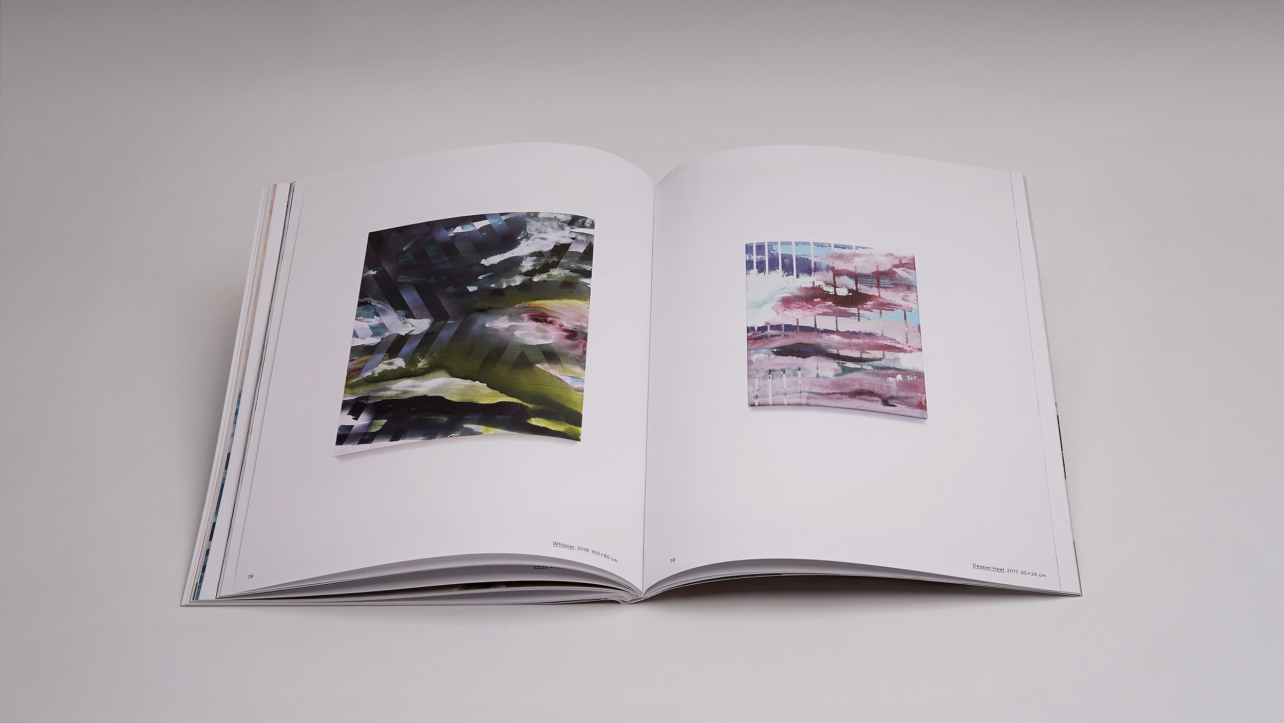 Wie wird aus einer einfachen Linie ein Horizont? Ab wann erkennen wir in Farben und Formen eine Landschaft? Michelle Jezierski nähert sich in ihrer Malerei jenem Kipppunkt, an dem die Wahrnehmung zwischen Farbe/Fläche und Räumlichkeit/Gegenständlichkeit zu oszillieren beginnt. Genau da fängt sie die Essenz der Landschaft an sich ein, die kein konkreter Ort, sondern eine Metapher für innere Zustände ist. Um zu diesem Punkt zu gelangen, destilliert Jezierski aus dem, was sie in ihrer Umgebung sieht, das für die Malerei Wesentliche - Farben und Formen -, das gerade noch einen Bildraum erkennen lässt, jedoch fortwährend in die Abstraktion driftet. Kennzeichnend für ihre Arbeitsweise ist, dass sie mehrere Bildebenen und Räume übereinander, gegeneinander verschoben auf die Leinwand bringt. So entdeckt sie "permanent neue Wege, den Bildraum zu stören", wie sie selbst sagt, es entstehen Brüche und Strukturen, die multiple Perspektiven, ein Portal zur Reflexion der eigenen Wahrnehmung eröffnen. Vor allem aber verleihen die Schnitte ihren Bildern einen eigentümlichen Rhythmus und eine enorme Sogwirkung, die beim Durchblättern dieses Katalogs Zeit und Raum vergessen machen.