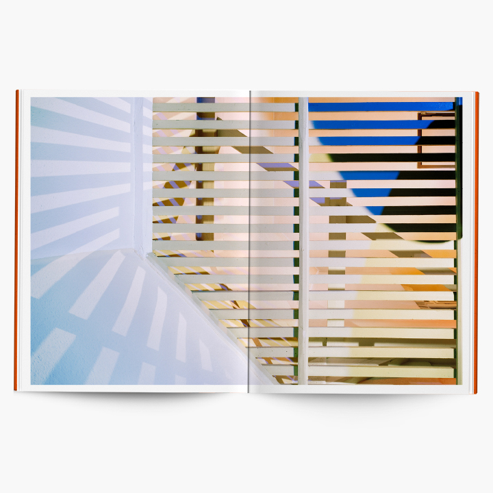 The large, double-sided, abstract visual compositions, which are rotated ninety degrees in the book, create a playful, enigmatic sense of vertigo that gradually triggers a way to decipher things and perceive traces of use. The pull of this extraordinary pictorial cosmos is intensified by the implementation of the extended 7-color offset printing process and the tactile layering of different surfaces, reflecting the artist’s process.