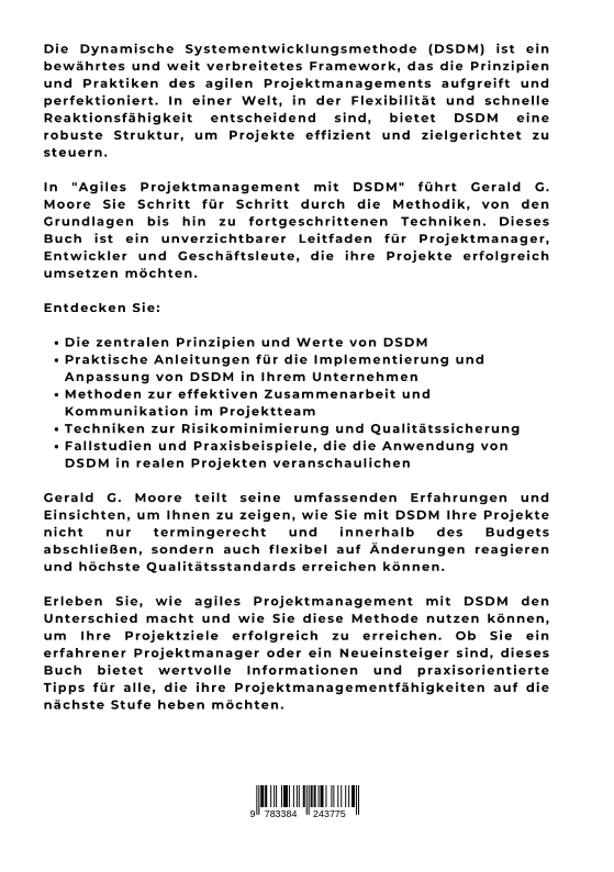 Die Dynamische Systementwicklungsmethode (DSDM) ist ein bewährtes und weit verbreitetes Framework, das die Prinzipien und Praktiken des agilen Projektmanagements aufgreift und perfektioniert. In einer Welt, in der Flexibilität und schnelle Reaktionsfähigkeit entscheidend sind, bietet DSDM eine robuste Struktur, um Projekte effizient und zielgerichtet zu steuern.In "Agiles Projektmanagement mit DSDM" führt Gerald G. Moore Sie Schritt für Schritt durch die Methodik, von den Grundlagen bis hin zu fortgeschrittenen Techniken. Dieses Buch ist ein unverzichtbarer Leitfaden für Projektmanager, Entwickler und Geschäftsleute, die ihre Projekte erfolgreich umsetzen möchten.Entdecken Sie:Die zentralen Prinzipien und Werte von DSDMPraktische Anleitungen für die Implementierung und Anpassung von DSDM in Ihrem UnternehmenMethoden zur effektiven Zusammenarbeit und Kommunikation im ProjektteamTechniken zur Risikominimierung und QualitätssicherungFallstudien und Praxisbeispiele, die die Anwendung von DSDM in realen Projekten veranschaulichenGerald G. Moore teilt seine umfassenden Erfahrungen und Einsichten, um Ihnen zu zeigen, wie Sie mit DSDM Ihre Projekte nicht nur termingerecht und innerhalb des Budgets abschließen, sondern auch flexibel auf Änderungen reagieren und höchste Qualitätsstandards erreichen können.Erleben Sie, wie agiles Projektmanagement mit DSDM den Unterschied macht und wie Sie diese Methode nutzen können, um Ihre Projektziele erfolgreich zu erreichen. Ob Sie ein erfahrener Projektmanager oder ein Neueinsteiger sind, dieses Buch bietet wertvolle Informationen und praxisorientierte Tipps für alle, die ihre Projektmanagementfähigkeiten auf die nächste Stufe heben möchten.