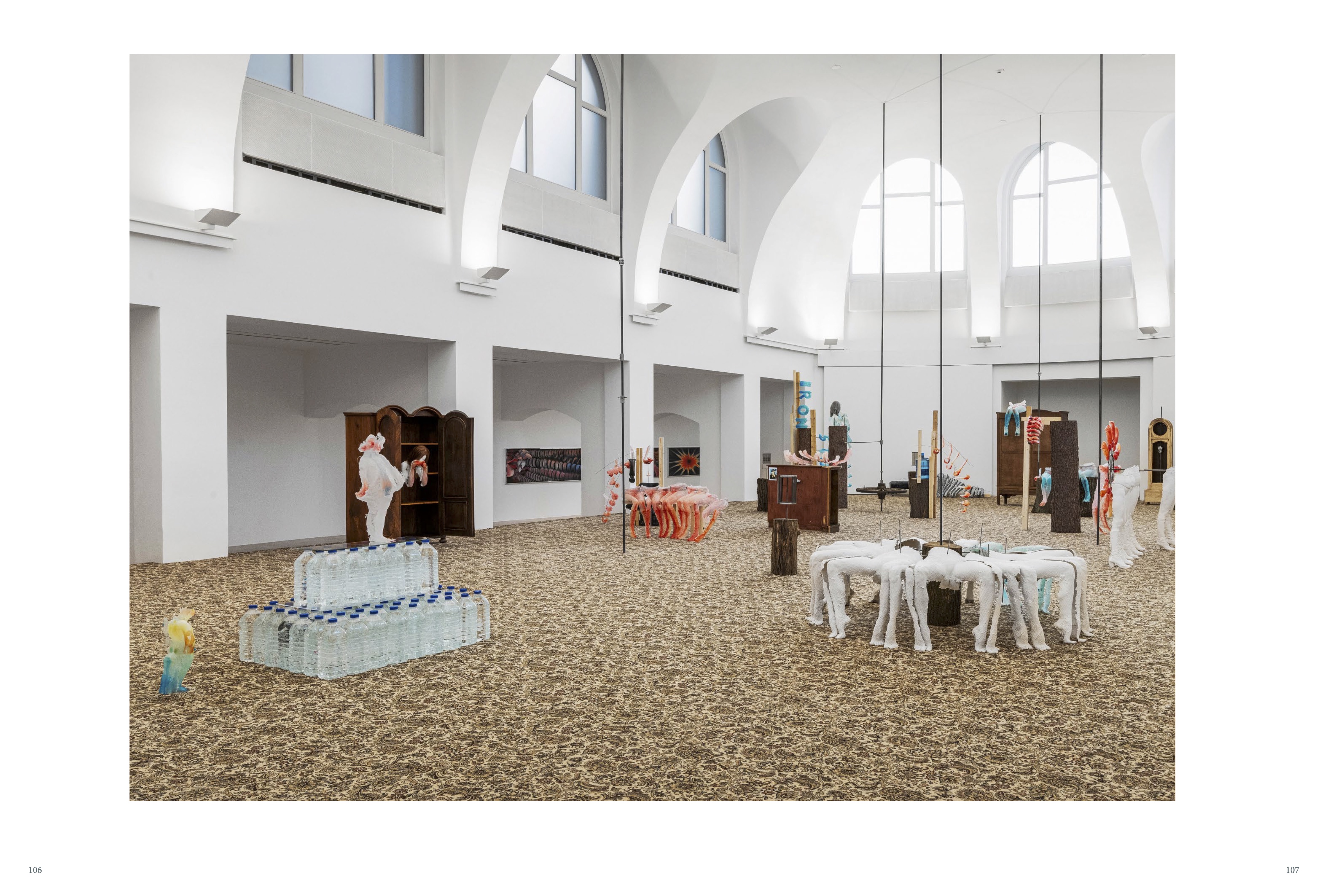 Rebecca Ackroyd's (b. Cheltenham, UK, 1987; lives and works in Berlin and London) art blends abstract and surreal elements articulated in complex installations and sculptures made of synthetic resin, wood, or plaster, but also in large-format paintings: the artist combines turbines or dreaming eyes rendered in gouaches with abstracted casts of her own body or objects such as wigs, sunglasses, or cages. Based on psychoanalytic theories, her works question fundamental aspects of the human experience of time as well as of womanhood and fertility.