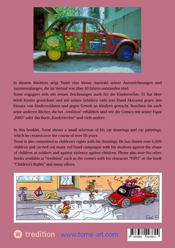 Welcher Junge ist bekannt, der nicht fasziniert wäre von Autos!? Autos waren schon immer ein Teil meiner Fantasie und Träume. Mein Traumauto, der Jaguar E-Type 2+2 stand als kleines Husky Modellauto (made in Great Bri-tain) seit 1969 als Sinnbild dafür in meinem Kinderzim-mer und später in meinem Studio.Nie hätte ich mir träumen lassen, dass ich dereinst dieses Auto in Echt mein Eigen nennen könnte.... und das auch noch als identisches Modell und gleichem Jahrgang wie mein Spielzeugauto, nämlich von 1969! Und nun ist er tatsächlich wahr geworden, dieser Bubentraum!Ich habe mein Leben lang immer wieder Autos gezeichnet, vorzugsweise die Traumautos meiner Matchbox Sammlung, die ich immer noch hege und in meinem Sammelkoffer aufbewahre... meine Bubenschätze eben. Später habe ich im Kunstunterricht als Lehrer das Thema "Auto" immer wieder aufgegriffen und meine Kinder Autos in allen Variationen zeichnen lassen, und das von der fünften bis neunten (Abschluss-) Klasse in verschiedenen Schwierigkeitsstufen... von der normalen Seitenansicht ohne Perspektive bis hin zur anspruchsvollen Dreifluchtpunkt-perspektive. Dazu habe ich meine Matchboxautos in die Klassenzimmer gebracht und jeder Schüler durfte sich ein Model (angesichts meines Alters für die Kinder natürlich alles "Oldtimer") zum Zeichnen aussuchen. Ich habe meinen Schülern zum Geburtstag auch immer wieder Autos gezeichnet. Eine kleine Auswahl meiner Autozeichnungen sind hier in diesem Büchlein versammelt.Does anybody know a Boy who isn't fascinated by autos!? Cars have always been a part of my imagination and dreams. My dream car, the Jaguar E-Type 2+2, stood as a small Husky model car (made in Great Britain) in my childhood room and later in my studio since 1969, as a symbol of this dream.I would never have dreamt that one day I would actually be able to call this car my own... and that even as an identical model and the same vintage as my toy car, namely from 1969! And now it has actually come true, this Boy's dream!I've been drawing cars all my life, preferably the dream cars from my Matchbox collection, which I still cherish and keep in my collection suitcase... my Boy's treasures. Later, as a teacher, I repeatedly picked up the topic of "cars" in art class and had my students draw cars in all variations, from the fifth to ninth (final) grades in various levels of difficulty... from the normal side view without perspective to the demanding three vanishing point perspective. I brought my Matchbox cars into the classroom and each student was allowed to choose a model (given my age, of course all "vintage cars" for the children) to draw. I always drew cars for my students' birthdays. A small selection of my auto drawings are collected here in this booklet.