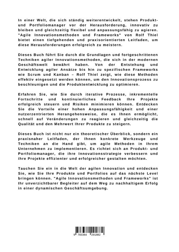 In einer Welt, die sich ständig weiterentwickelt, stehen Produkt- und Portfoliomanager vor der Herausforderung, innovativ zu bleiben und gleichzeitig flexibel und anpassungsfähig zu agieren. "Agile Innovationsmethoden und Frameworks" von Rolf Thiel bietet einen tiefgehenden und praxisorientierten Leitfaden, um diese Herausforderungen erfolgreich zu meistern.Dieses Buch führt Sie durch die Grundlagen und fortgeschrittenen Techniken agiler Innovationsmethoden, die sich in der modernen Geschäftswelt bewährt haben. Von der Entstehung und Entwicklung agiler Ansätze bis hin zu spezifischen Frameworks wie Scrum und Kanban - Rolf Thiel zeigt, wie diese Methoden effektiv eingesetzt werden können, um den Innovationsprozess zu beschleunigen und die Produktentwicklung zu optimieren.Erfahren Sie, wie Sie durch iterative Prozesse, inkrementelle Fortschritte und kontinuierliches Feedback Ihre Projekte erfolgreich steuern und Risiken minimieren können. Entdecken Sie die Vorteile einer hohen Anpassungsfähigkeit und einer nutzerzentrierten Herangehensweise, die es Ihnen ermöglicht, schnell auf Veränderungen zu reagieren und gleichzeitig die Qualität und den Mehrwert Ihrer Produkte zu steigern.Dieses Buch ist nicht nur ein theoretischer Überblick, sondern ein praxisnaher Leitfaden, der Ihnen konkrete Werkzeuge und Techniken an die Hand gibt, um agile Methoden in Ihrem Unternehmen zu implementieren. Es richtet sich an Produkt- und Portfoliomanager, die ihre Innovationsstrategie verbessern und ihre Projekte effizienter und erfolgreicher gestalten möchten.Tauchen Sie ein in die Welt der agilen Innovation und entdecken Sie, wie Sie Ihre Produkte und Portfolios auf das nächste Level bringen können. "Agile Innovationsmethoden und Frameworks" ist Ihr unverzichtbarer Begleiter auf dem Weg zu nachhaltigem Erfolg in einer dynamischen Geschäftsumgebung.