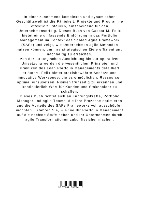 In einer zunehmend komplexen und dynamischen Geschäftswelt ist die Fähigkeit, Projekte und Programme effektiv zu steuern, entscheidend für den Unternehmenserfolg. Dieses Buch von Caspar M. Felix bietet eine umfassende Einführung in das Portfolio Management im Kontext des Scaled Agile Framework (SAFe) und zeigt, wie Unternehmen agile Methoden nutzen können, um ihre strategischen Ziele effizient und nachhaltig zu erreichen.Von der strategischen Ausrichtung bis zur operativen Umsetzung werden die wesentlichen Prinzipien und Praktiken des Lean Portfolio Managements detailliert erläutert. Felix bietet praxisbewährte Ansätze und innovative Werkzeuge, die es ermöglichen, Ressourcen optimal einzusetzen, Risiken frühzeitig zu erkennen und kontinuierlich Wert für Kunden und Stakeholder zu schaffen.Dieses Buch richtet sich an Führungskräfte, Portfolio Manager und agile Teams, die ihre Prozesse optimieren und die Vorteile des SAFe Frameworks voll ausschöpfen möchten. Erfahren Sie, wie Sie Ihr Portfolio Management auf die nächste Stufe heben und Ihr Unternehmen durch agile Transformationen zukunftssicher machen.