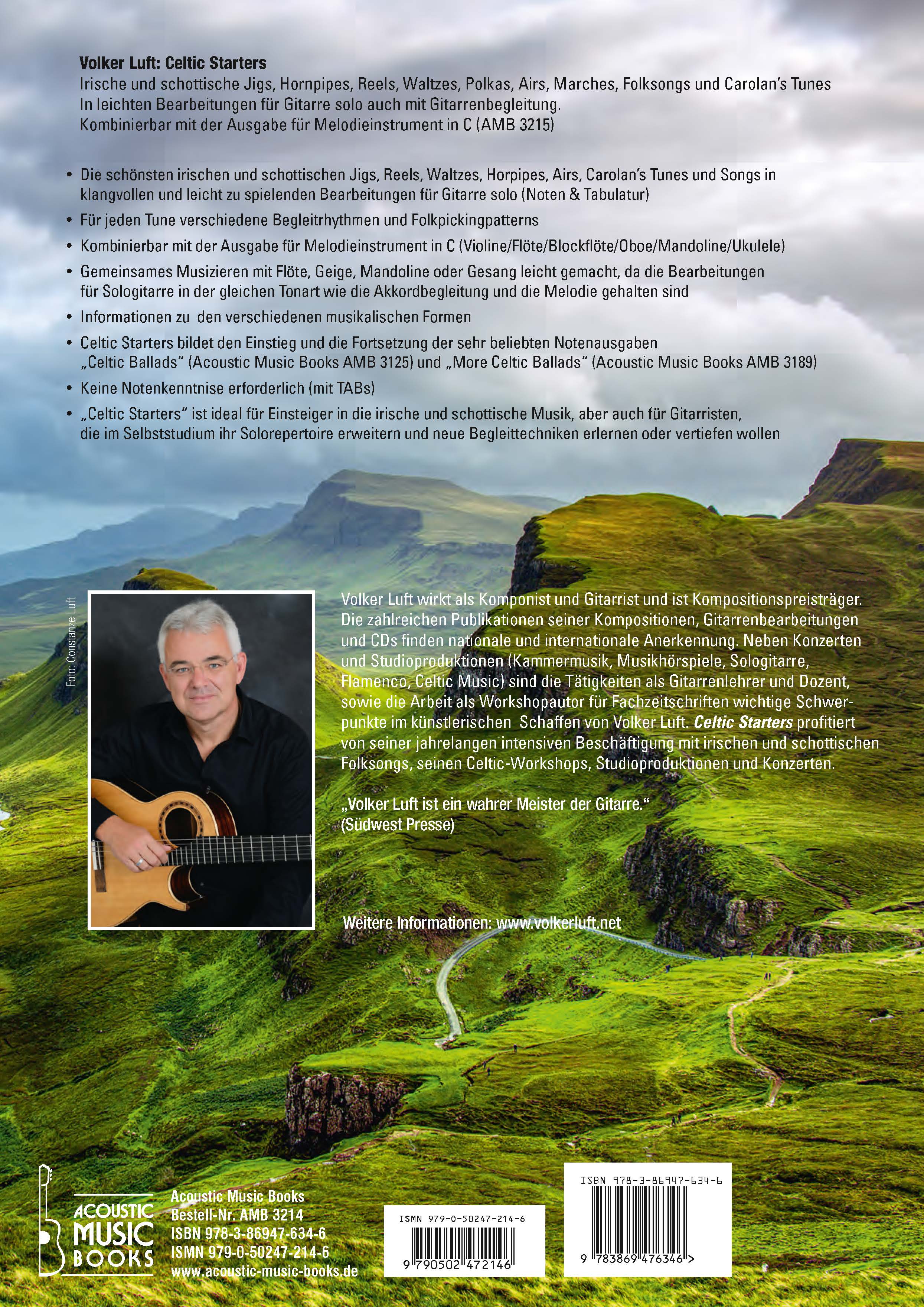 „Celtic Starters“ ist ideal für Einsteiger in die irische und schottische Musik, aber auch für Gitarristen, die im Selbststudium ihr Solorepertoire erweitern und neue Begleittechniken erlernen oder vertiefen wollen
