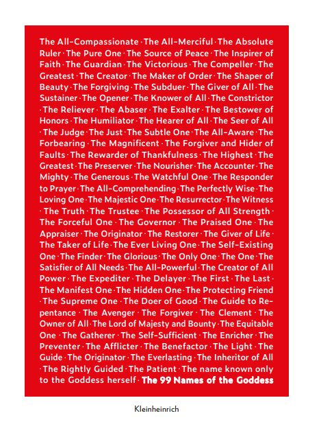 Die Künstlerin:"Es geht mir um die Schaffung weiblicher, neuer Ikonen. Ich benutzeden Begriff 'Göttin', weil der Begriff 'Gott' männlich konnotiert ist.Wir Frauen, es handelt sich immerhin um die Hälfte der Menschheit,können uns bislang nur mit männlich definierten Göttern identifizieren. Das schwächt unser Selbstwertgefühl.Eine Gesellschaft, die das Weibliche als 'Basis' und 'Urkraft'anerkennen und entsprechend ehren würde, wäre aus meinerSicht glücklicher, lustvoller und sinnlicher."