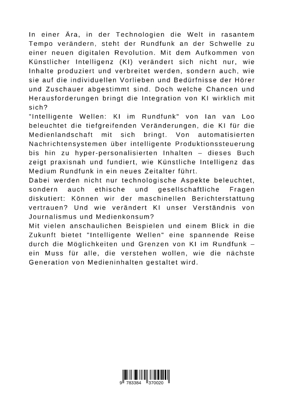 In einer Ära, in der Technologien die Welt in rasantem Tempo verändern, steht der Rundfunk an der Schwelle zu einer neuen digitalen Revolution. Mit dem Aufkommen von Künstlicher Intelligenz (KI) verändert sich nicht nur, wie Inhalte produziert und verbreitet werden, sondern auch, wie sie auf die individuellen Vorlieben und Bedürfnisse der Hörer und Zuschauer abgestimmt sind. Doch welche Chancen und Herausforderungen bringt die Integration von KI wirklich mit sich?"Intelligente Wellen: KI im Rundfunk" von Ian van Loo beleuchtet die tiefgreifenden Veränderungen, die KI für die Medienlandschaft mit sich bringt. Von automatisierten Nachrichtensystemen über intelligente Produktionssteuerung bis hin zu hyper-personalisierten Inhalten - dieses Buch zeigt praxisnah und fundiert, wie Künstliche Intelligenz das Medium Rundfunk in ein neues Zeitalter führt.Dabei werden nicht nur technologische Aspekte beleuchtet, sondern auch ethische und gesellschaftliche Fragen diskutiert: Können wir der maschinellen Berichterstattung vertrauen? Und wie verändert KI unser Verständnis von Journalismus und Medienkonsum?Mit vielen anschaulichen Beispielen und einem Blick in die Zukunft bietet "Intelligente Wellen" eine spannende Reise durch die Möglichkeiten und Grenzen von KI im Rundfunk - ein Muss für alle, die verstehen wollen, wie die nächste Generation von Medieninhalten gestaltet wird.