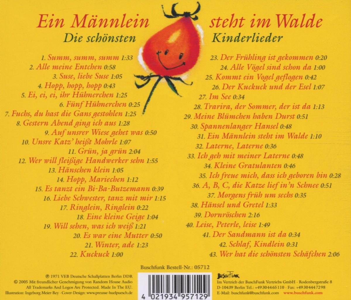 | Schlagworte | DDR • Kinderlieder • Kinderlieder (Audio-CD) • Kinderlieder-CDs (Audio) • Männlein • Original • Walde |