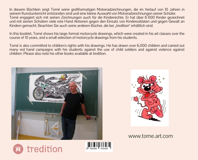 Tomé Thomas Etzensperger, 1958 in Zürich geboren, studierte zunächst Medizin, bevor er als Graphik-Designer seine Comics und Cartoons in vielen Zeitungen in den USA, Deutschland und der Schweiz veröffentlichte. Er arbeitete als Kunst-, Sport- und Ethiklehrer an drei Schulen und lebt mit seiner Frau und den beiden Söhnen in Augsburg. Mit seinem 2011 eröffneten Kinderporträt-museum engagiert sich Tomé mit Ausstellungen und Aktionen für die Kinderrechte. Er hat in den letzten Jahren über 5´400 Kinder gezeichnet. Wer mehr darüber lesen, sehen oder sein Kind zeichnen lassen möchte, findet alle Informationen und ein Kontaktformular auf: www.tome-art.com Tomé Thomas Etzensperger, born in Zurich / Switzerland in 1958, initially studied medicine. However, drawing was something of a cradle, and so he quickly turned his hobby into a profession. During his studies as a communication designer, he developed many funny cartoon characters. His comic strip “PiPO” has been featured in many daily newspapers in Germany, the USA and Switzerland. He was an art, sports and ethics teacher at three schools and is involved with his Children’s Portrait Museum, which he founded in 2011 to give children a platform here, with exhibitions and activities for children’s rights. Tomé is also known for his “red hand” painting project against child soldiers. He has drawn more than 5,400 children in recent years. Contact: www.tome-art.com