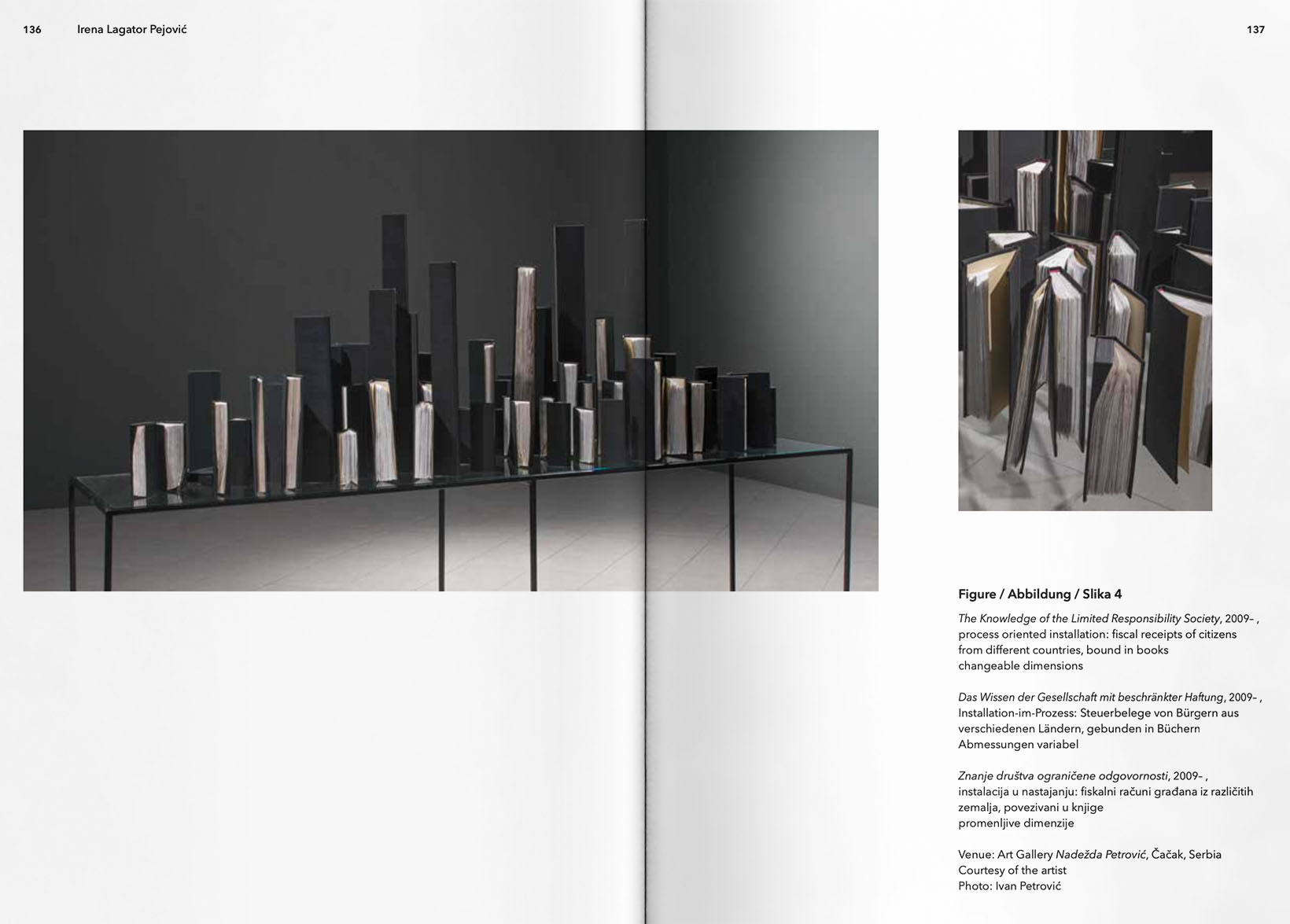 Irena Lagator Pejović (* 1976 in Jugoslawien) ist Künstlerin und Kunsttheoretikerin. Sie forscht zu drän-genden Fragen in Bezug auf das Kapitolozän, Biopolitik und soziale Verantwortung. Ihre Werke werden national und international ausgestellt und finden sich in namhaften öffentlichen und privaten Sammlungen. Unter ihren Katalogen ist The Society of Unlimited Responsibility: Art as Social Strategy, hg. v. Neue Galerie Graz (Buchhandlung Walther König 2012) nach wie vor zentral. www.irenalagator.net