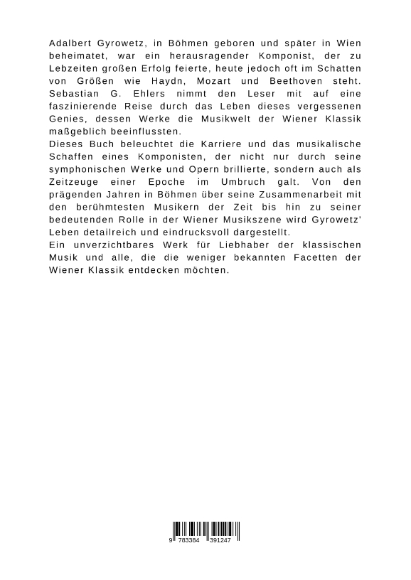 Adalbert Gyrowetz, in Böhmen geboren und später in Wien beheimatet, war ein herausragender Komponist, der zu Lebzeiten großen Erfolg feierte, heute jedoch oft im Schatten von Größen wie Haydn, Mozart und Beethoven steht. Sebastian G. Ehlers nimmt den Leser mit auf eine faszinierende Reise durch das Leben dieses vergessenen Genies, dessen Werke die Musikwelt der Wiener Klassik maßgeblich beeinflussten.Dieses Buch beleuchtet die Karriere und das musikalische Schaffen eines Komponisten, der nicht nur durch seine symphonischen Werke und Opern brillierte, sondern auch als Zeitzeuge einer Epoche im Umbruch galt. Von den prägenden Jahren in Böhmen über seine Zusammenarbeit mit den berühmtesten Musikern der Zeit bis hin zu seiner bedeutenden Rolle in der Wiener Musikszene wird Gyrowetz' Leben detailreich und eindrucksvoll dargestellt.Ein unverzichtbares Werk für Liebhaber der klassischen Musik und alle, die die weniger bekannten Facetten der Wiener Klassik entdecken möchten.