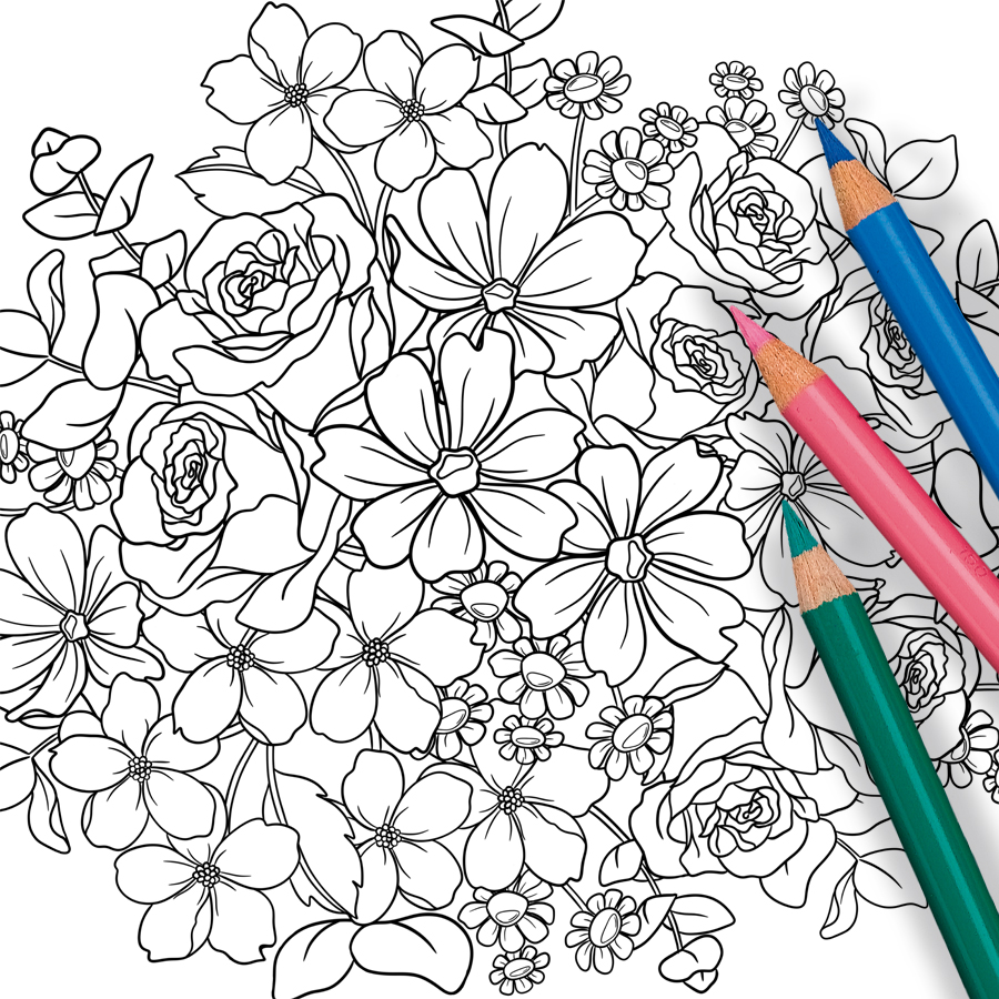 Nimm deine Buntstifte und lass dich ins Blütenmeer fallen!