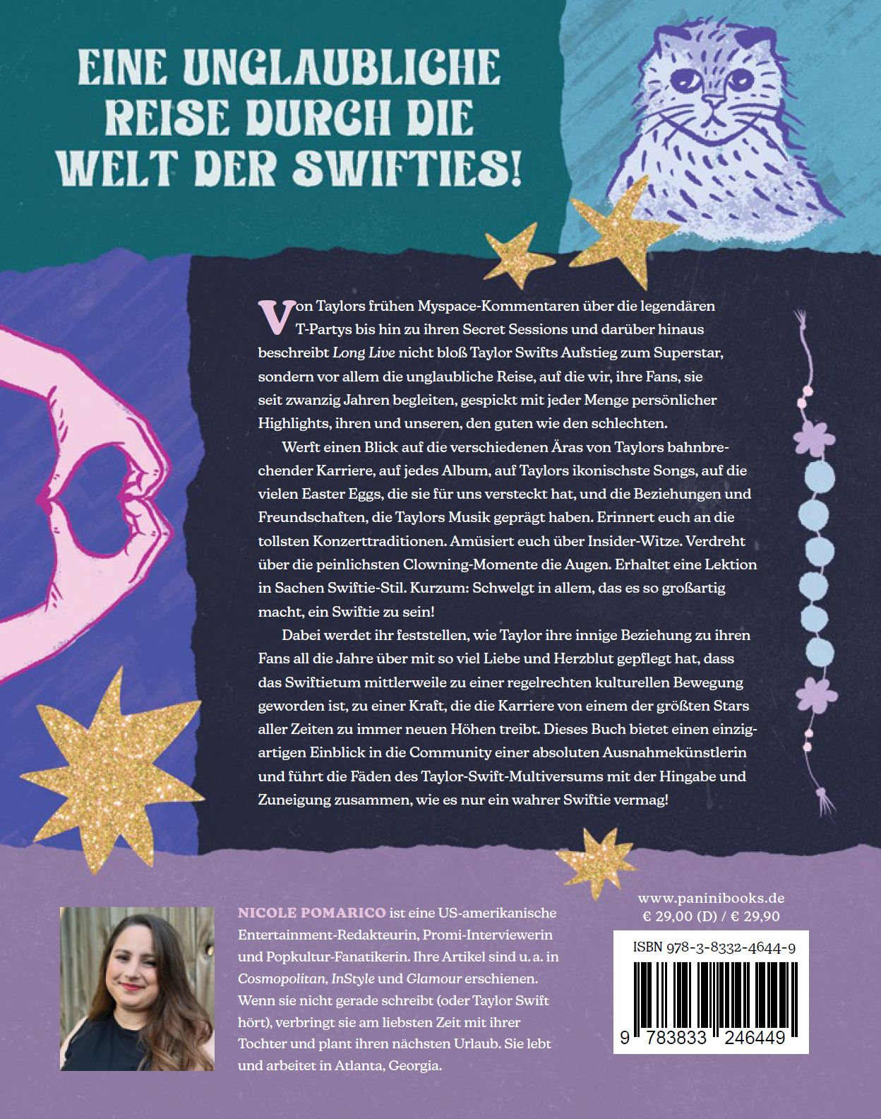 Dieses reich illustrierte Kompendium ist ein absolutes Must-Have für jeden Taylor Swift Fan! Es beleuchtet das Swift-Universum aus allen Perspektiven und nimmt dich mit auf eine Reise durch die Geschichte der Fangemeinde, mit exklusiven Interviews und Hintergrunddetails zu Taylors Karriere über alle Ären hinweg, einschließlich "The Tortured Poets Department". Egal, ob du schon immer ein Swiftie warst oder ganz neu in ihren Universum gelandet bist, hier ist der ultimative Fan-Leitfaden. Erfahre die Hintergründe aller Insider-Witze oder längst vergessene Details aus Taylors Vergangenheit. Von MySpace-Kommentaren über T-Party-Einladungen bis hin zu Secret Sessions und darüber hinaus erkundet "Long Live" nicht nur Taylors Entwicklung, sondern auch die Achterbahnfahrt, die Fans mit ihr durch zwei Jahrzehnte persönlicher Meilensteine erlebt haben – ihre und unsere, gute wie schlechte. Mit stilvollen Illustrationen und Fotos bietet dieses Buch einen essentiellen Einblick in die Karriere der Künstlerin und ihre Fangemeinde. Das rundum Wohlfühlpaket für Taylor-Swift-Fans!