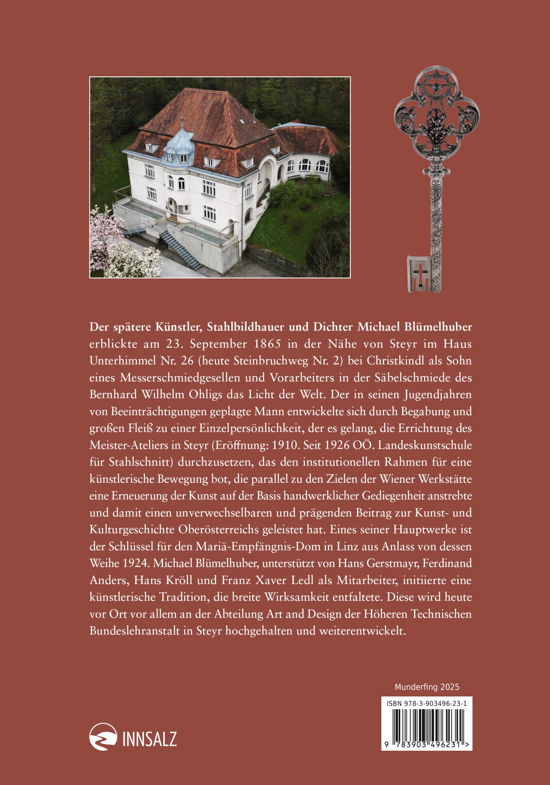 Der spätere Künstler, Stahlbildhauer und Dichter Michael Blümelhuber erblickte am 23. September 1865 in der Nähe von Steyr im Haus Unterhimmel Nr. 26 (heute Steinbruchweg Nr. 2) bei Christkindl als Sohn eines Messerschmiedgesellen und Vorarbeiters in der Säbelschmiede des Bernhard Wilhelm Ohligs das Licht der Welt. Der in seinen Jugendjahren von Beeinträchtigungen geplagte Mann entwickelte sich durch Begabung und großen Fleiß zu einer Einzelpersönlichkeit, der es gelang, die Errichtung des Meister-Ateliers in Steyr (Eröffnung: 1910. Seit 1926 OÖ. Landeskunstschule für Stahlschnitt) durchzusetzen, das den institutionellen Rahmen für eine künstlerische Bewegung bot, die parallel zu den Zielen der Wiener Werkstätte eine Erneuerung der Kunst auf der Basis handwerklicher Gediegenheit anstrebte und damit einen unverwechselbaren und prägenden Beitrag zur Kunst- und Kulturgeschichte Oberösterreichs geleistet hat. Eines seiner Hauptwerke ist der Schlüssel für den Mariä-Empfängnis-Dom in Linz aus Anlass von dessen Weihe 1924. Die von Michael Blümelhuber, unterstützt von Hans Gerstmayr, Ferdinand Anders, Hans Kröll und Franz Xaver Ledl als Mitarbeitern, initiierte künstlerische Tradition, entfaltete breite Wirksamkeit und wird vor Ort vor allem an der Abteilung Art and Design der Höheren Technischen Bundeslehranstalt in Steyr hochgehalten und weiterentwickelt.