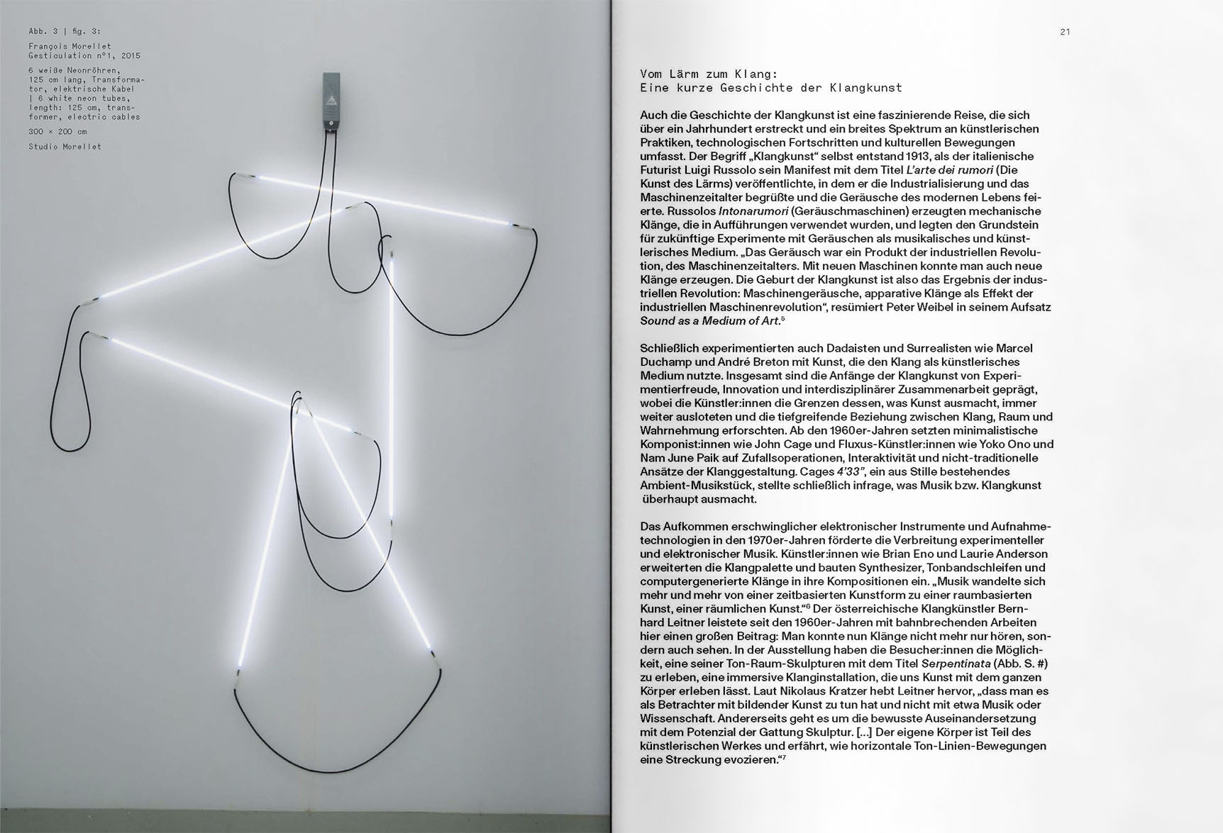 Die Ausstellung Light Sound Senses erforscht Licht als physikalisches und natürliches sowie ästhetisch nutzbares Phänomen und zielt darauf ab, unsere vielfältigen Sinneswahrnehmungen anzuregen. Die Besucher sind eingeladen, sich mit multisensorischen Kunstwerken auseinanderzusetzen, um ihr eigenes Bewusstsein für Raum, Zeit, Licht und Klang zu schärfen. Licht wird dabei sowohl als Indikator technologischer Entwicklung als auch als kulturelles Konstrukt mit symbolischer Bedeutung untersucht. Durch Werke aus der Heidi Horten Collection sowie Leihgaben von TBA21 und ortsspezifische sowie immersive Installationen - die exklusiv für die Ausstellung von eingeladenen Künstlern realisiert wurden - vermittelt Light Sound Senses ein tieferes Verständnis für das Wesen von Licht, Klang und unsere fünf Sinne.In der Ausstellung, die sich über zwei Stockwerke des Museums erstreckt, lernen Besucher Pioniere der Lichtkunst wie László Moholy-Nagy kennen oder begegnen immersiven Lichtinstallationen von Olafur Eliasson, Brigitte Kowanz und Siegrun Appelt. Appelt befasst sich mit dem Thema Lichtverschmutzung und den wissenschaftlichen Hintergründen der Tageslichtforschung.Tracey Emin und Joseph Kosuth verwenden Neon als künstlerisches und konzeptuelles Material. Eine raumfüllende Klanginstallation des österreichischen Künstlers Bernhard Leitner lädt die Besucher dazu ein, "Klang zu sehen"; andere Künstler nutzen Klang, um eine stärkere Wahrnehmung des eigenen Körpers zu ermöglichen. Schließlich regen Werke von Lena Henke und Ernesto Neto den Geruchs- und Geschmackssinn an.Beteiiligte Künstler:innenSiegrun Appelt with Constanze Müller, John M Armleder, Cibelle Cavalli Bastos, Olafur Eliasson, Tracey Emin, Cerith Wyn Evans, Dan Flavin, Ceal Floyer, Peter Friedl, Gelatin, Helga Griffiths, Lena Henke, Carsten Höller, Kristof Kintera, Edgar Knoop, Brigitte Kowanz, Joseph Kosuth, Bernhard Leitner, Paul McCarthy, László Moholy-Nagy, Iván Navarro, Ernesto Neto, Carsten Nicolai, Tim Noble & Sue Webster, Tony Oursler, Finnbogi Petursson, Ugo Rondinone, Christine Schörkhuber, SUPERFLEX, Iv Toshain and Martin Walde.