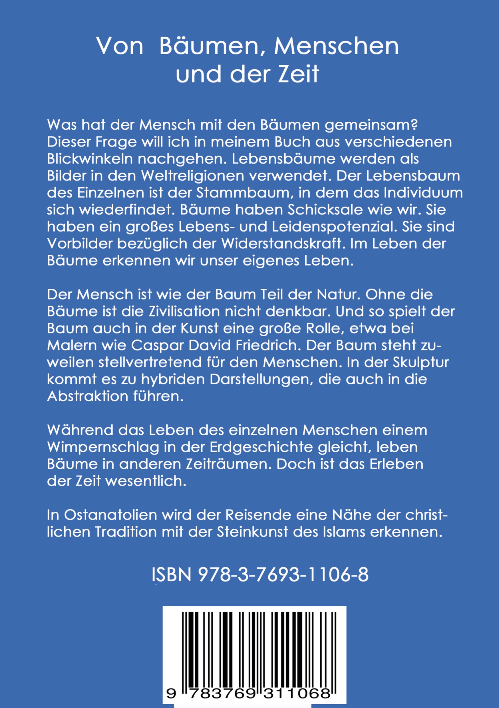 Was hat der Mensch mit Bäumen gemeinsam? Dieser Frage will ich in meinem Buch nachgehen. Lebensbäume werden in den Weltreligionen verwendet. Der Lebensbaum des Einzelnen ist der Stammbaum, in dem wir uns als Einzelne wiederfinden, in dem wir verbunden sind in einer Kette von Menschen vor und nach uns. Bäume tragen, ertragen Schicksale wie wir. Sie haben ein großes Lebens- und Leidenspotenzial. Bäume blühen, tragen Frucht, überstehen Wind und Wetter, sind Vorbilder für uns Menschen bezüglich der Resilienz, der Widerstandskraft. Im Leben der Bäume erkennen wir unser eigenes Leben als zyklisch, im Zyklus der Jahreszeiten den Zyklus unseres Lebens.
