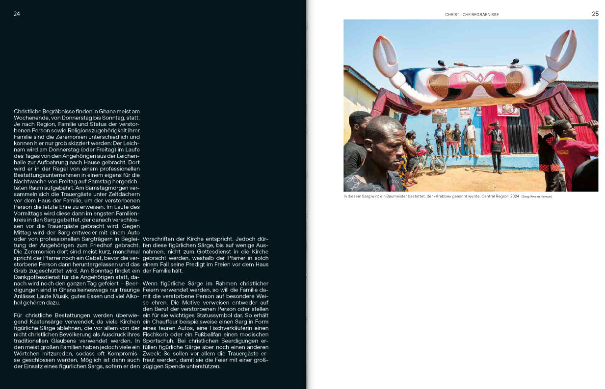 „Das Fotobuch erlaubt einen einzigartigen Einblick in Ghanas Bestattungskultur, der Aussenstehenden üblicherweise verwehrt bleibt.“ Neue Zürcher Zeitung, 06.08.2025