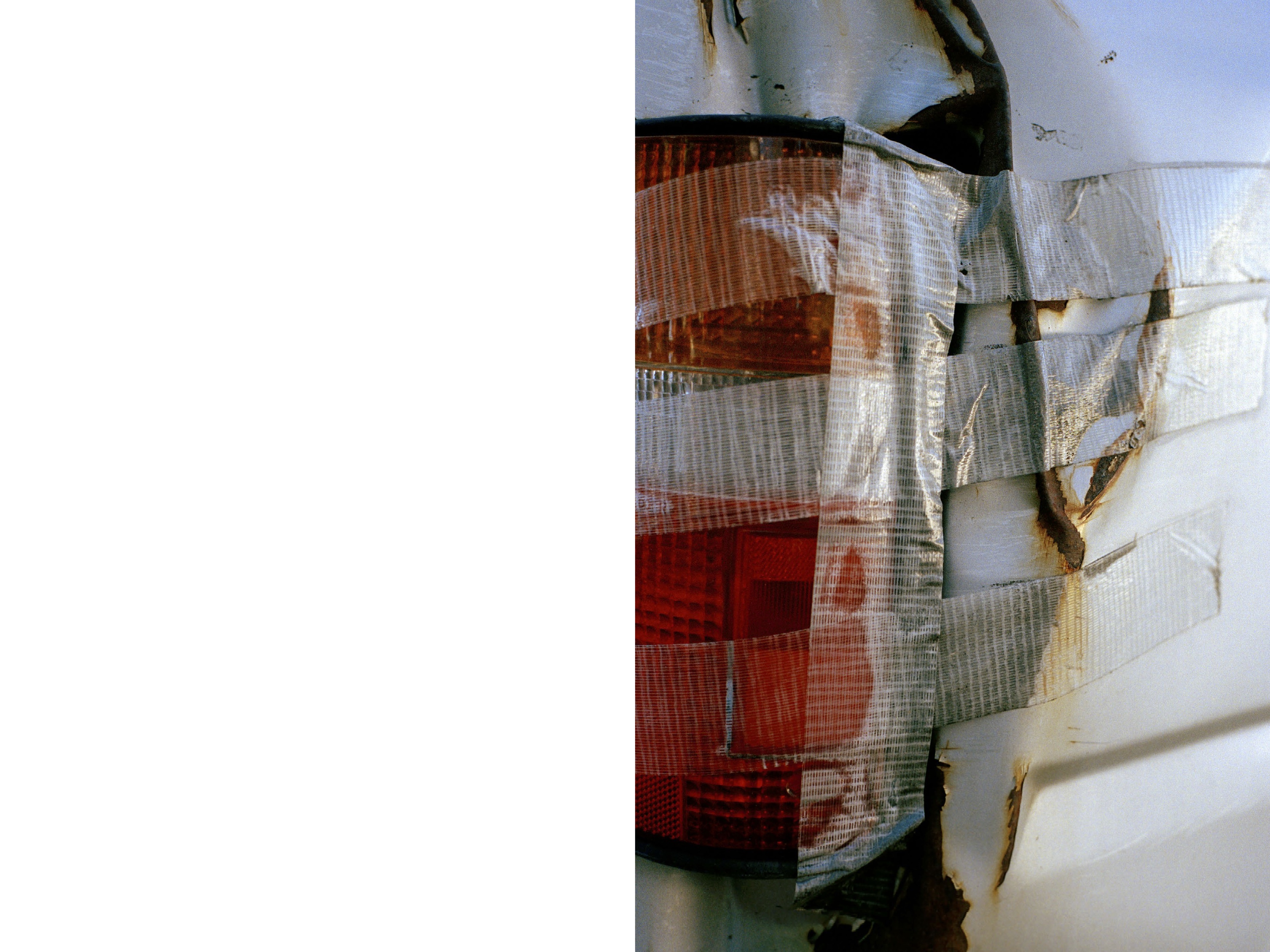 Traces of use are considered defects that detract from the original quality of an object or product. We tend to actively ignore small dents or flaws as though they did not exist, and try to airbrush scratches and smooth out peculiarities. For his photographic series Cracks and Dents (2016-2018), Lycien-David Cse ry (b. Tarmstedt, Germany, 1985; lives and works in Buchenberg, Germany) studied these imperfections. The focus of his shots is on the traces of wear on various vehicle bodies. Cséry documents a remarkable diversity of textures, shapes, and colors in car parts whose surfaces are marked by rust, oxidation, dirt, or paint spalling.