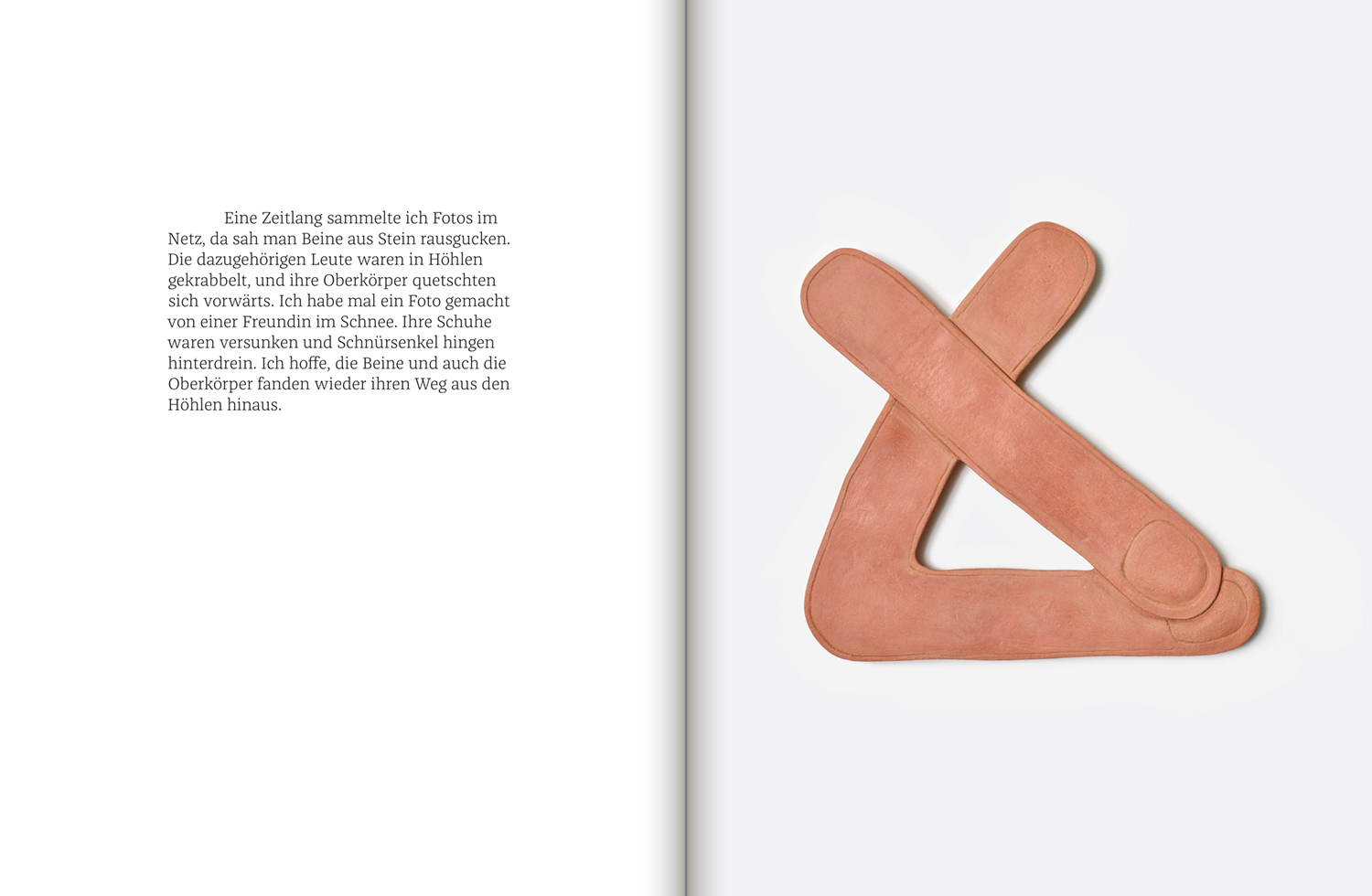 “I want to carve the message in stone”—a statement that echoes the desire to preserve the ephemeral. But what message is meant remains unclear: are they the contours of body parts etched into red clay? Or simple calculations like 2+1-1-1? In her publication, Sophie Aigner explores the idea of voids and losses—ranging from literal holes dug into the ground to irretrievable moments of life.