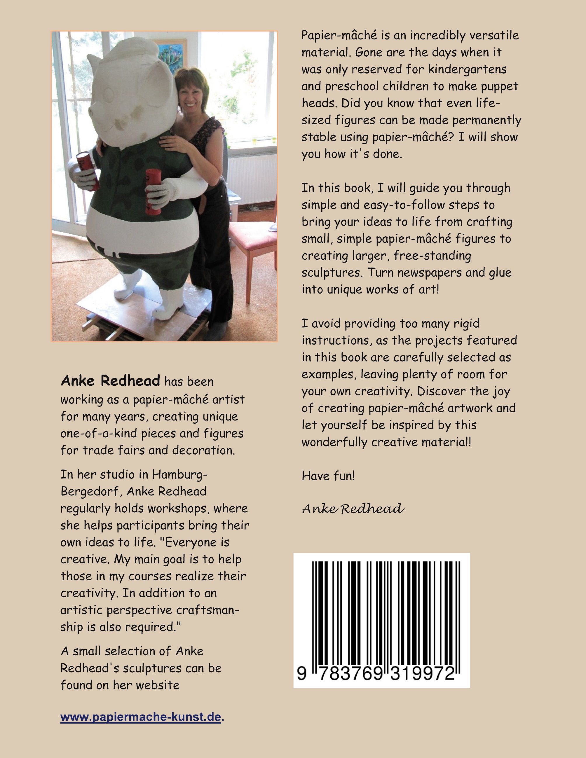 Anke Redhead has been working as a papier-mâché artist for many years, creating unique one-of-a-kind pieces and figures for trade fairs and decoration. In her studio in Hamburg-Bergedorf, Anke Redhead regularly holds workshops, where she helps participants bring their own ideas to life. "Everyone is creative. My main goal is to help those in my courses realize their creativity. Alongside an artistic perspective, a lot of craftsmanship is also required." A small selection of Anke Redhead's sculptures can be found on her website www.papiermache-kunst.de.