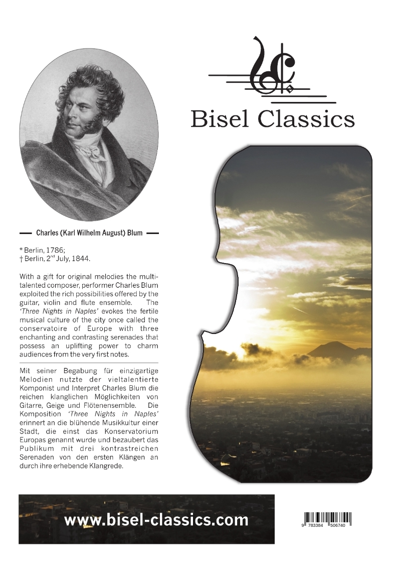 | Schlagworte | Charles Blum • Drei Nächte in Neapel • Flöte • Gitarre • Kammermusik • Kammermusik-Partitur • Karl Wilhelm August Blum • Serenade • Three Nights in Naples • Violine • Vortragsstücke |
