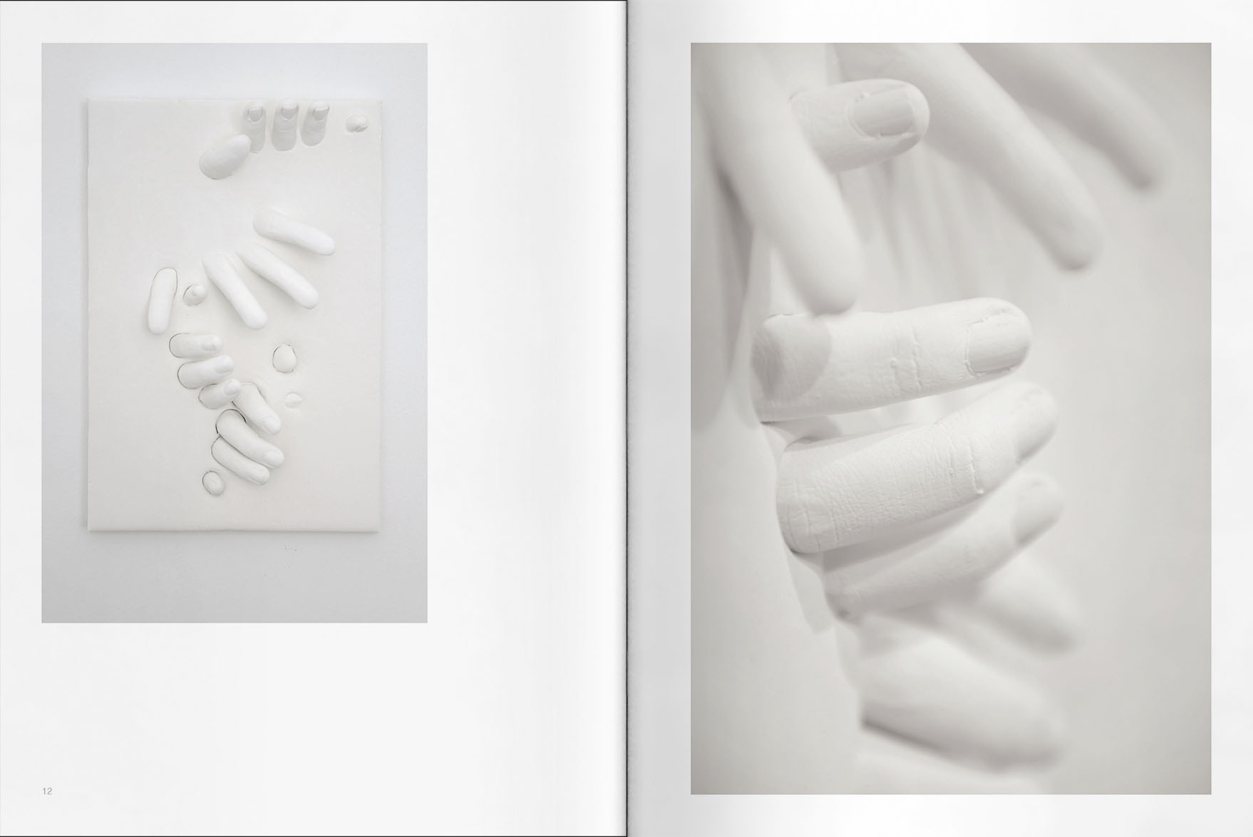 The Austrian artist Katharina Stiglitz asks questions about processes of perception, memory and transience. Using photography, drawing and installation, Stiglitz explores the boundaries of the visible. Her mostly monochrome works leave fading traces of what was once there and create connections to oblivion, presence and absence. The design of the book takes up this artistic exploration and moves within the same monochrome spectrum. The jet black cover bears the almost immaterial book title, which oscillates between readability and illegibility. Prominent brackets mark empty spaces and shine in silver. Black and white contrasts inside and the change from smooth to rough or from hard to soft paper in the middle of the book allude to Stiglitz's ongoing search for the 'in-between'. The prose miniatures by Katharina J. Ferner are printed on silver pages and are interspersed throughout the work section. They light up again and again like interstellar parallel worlds and break the flow of reading to refocus attention. The otherwise restrained graphic design creates the greatest possible space for the impact and visual experience of Katharina Stiglitz's works.