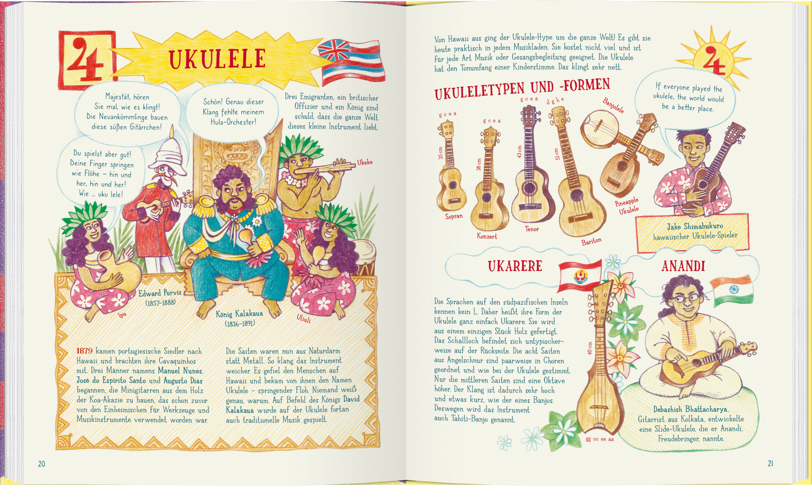 | Schlagworte | Banjo • Gitarre, Zupfinstrumente • illustriertes Buch • Kindersachbuch • Musik • Noten • Resonanz • Saiten • Saiteninstrumente • Schwingung • Ukulele |