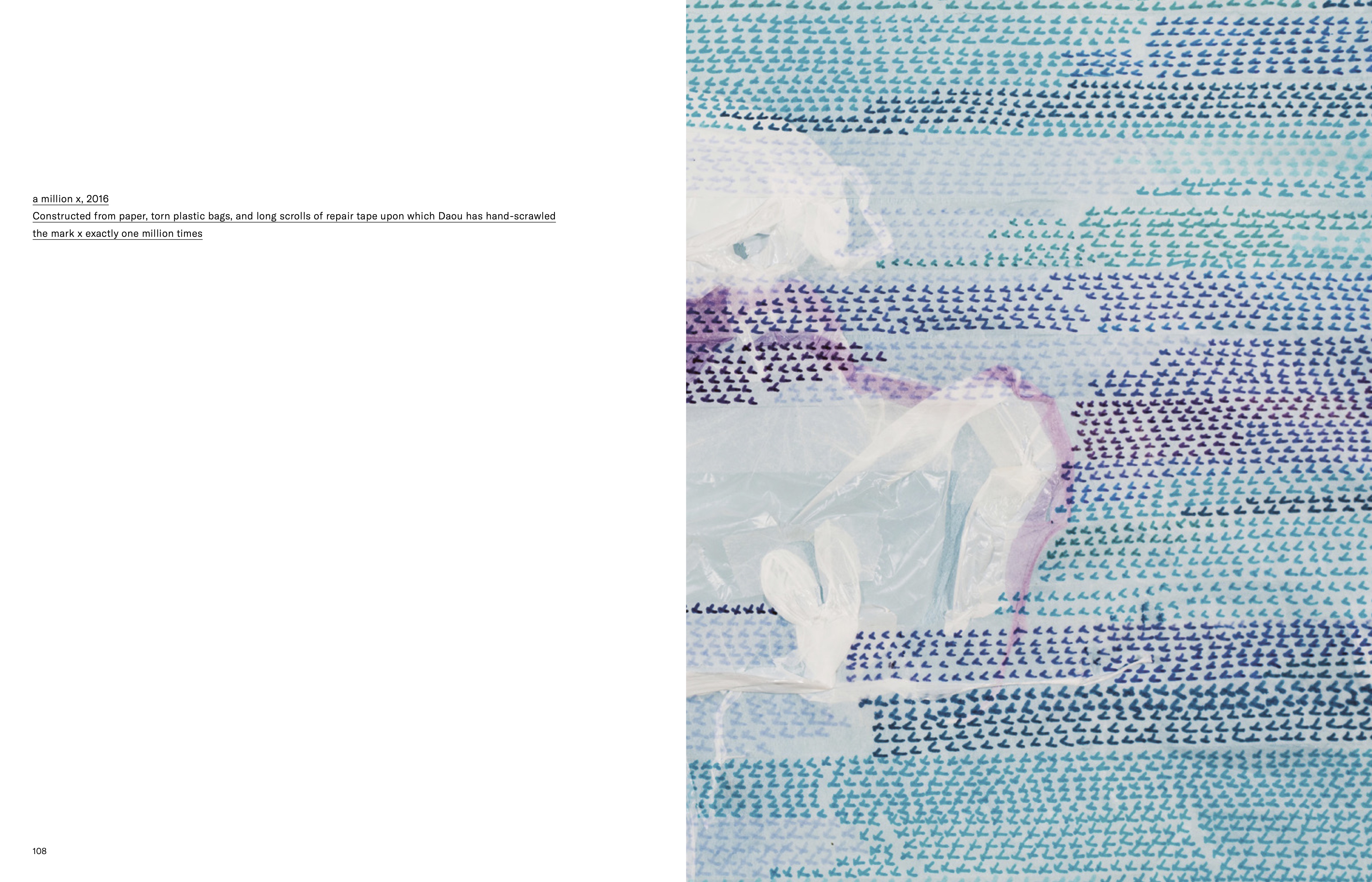 Annabel Daou's (b. Beirut, 1967; lives and works in New York) artistic practice takes place at the intersection of writing, speech, and non-verbal modes of communication. Her paper- and tape-based constructions, sound pieces, and performances explore the language of power, intimacy, and self-encounter. Daou's work is often constructed out of lightweight, seemingly ephemeral materials that both indicate and resist a sense of objecthood.