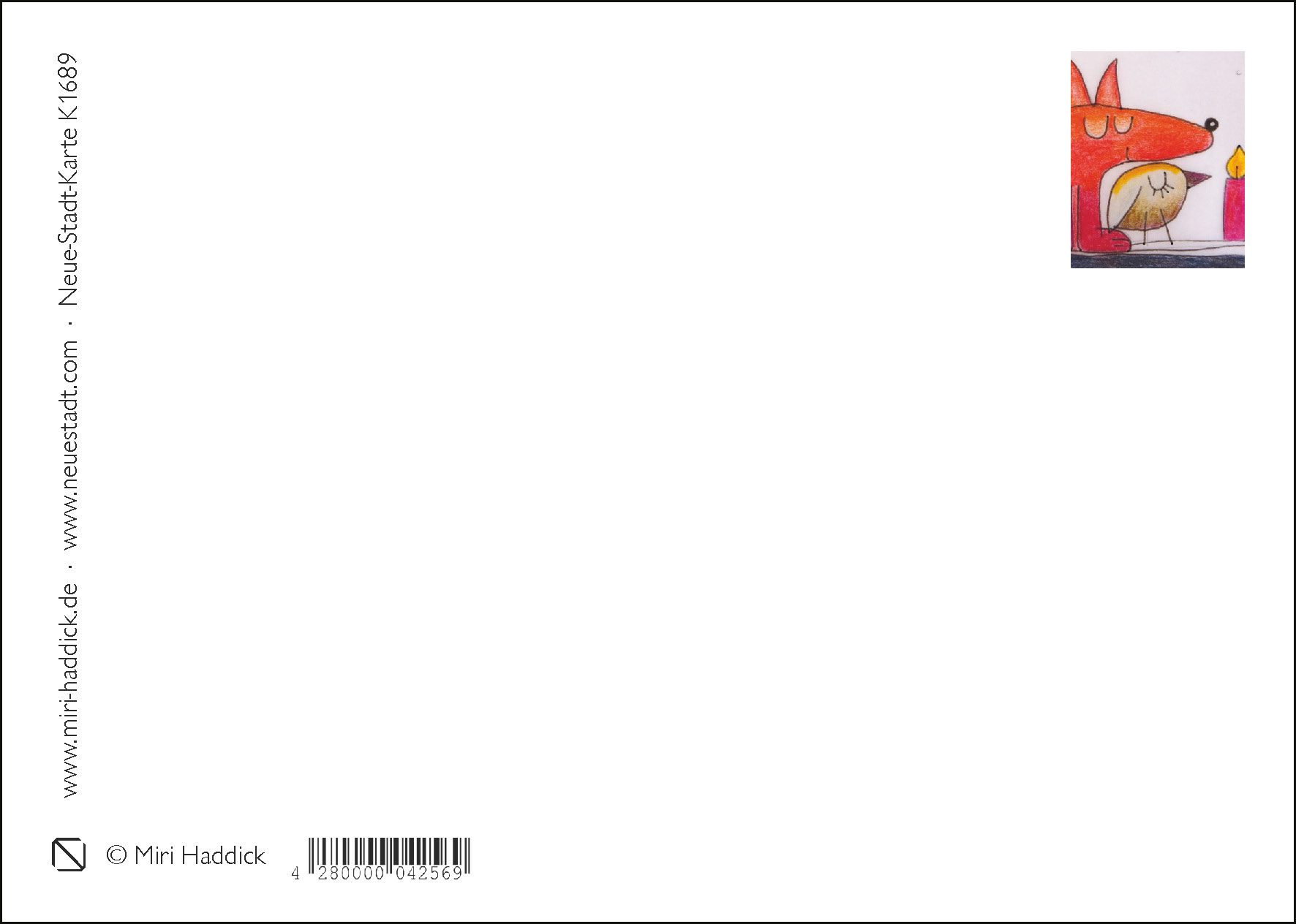 ."Kunst erwächst auch aus Glück", und Glück ist für die Künstlerin Miri Haddick ohne Tiere kaum vorstellbar. Deshalb spielen Tiere eine prominente Rolle in ihren bezaubernden Illustrationen. Diese Weihnachtskarte ist einzeln bestellbar und gehört auch zu einem Set von 10 Weihnachtskarten in einem wiederverwendbaren Kartenkästen (GTIN: 4280000042385), in dem sich - nach Versand der zehn Künstlerpostkarten von Miri - auch andere hübsche Dinge aufbewahren lassen.