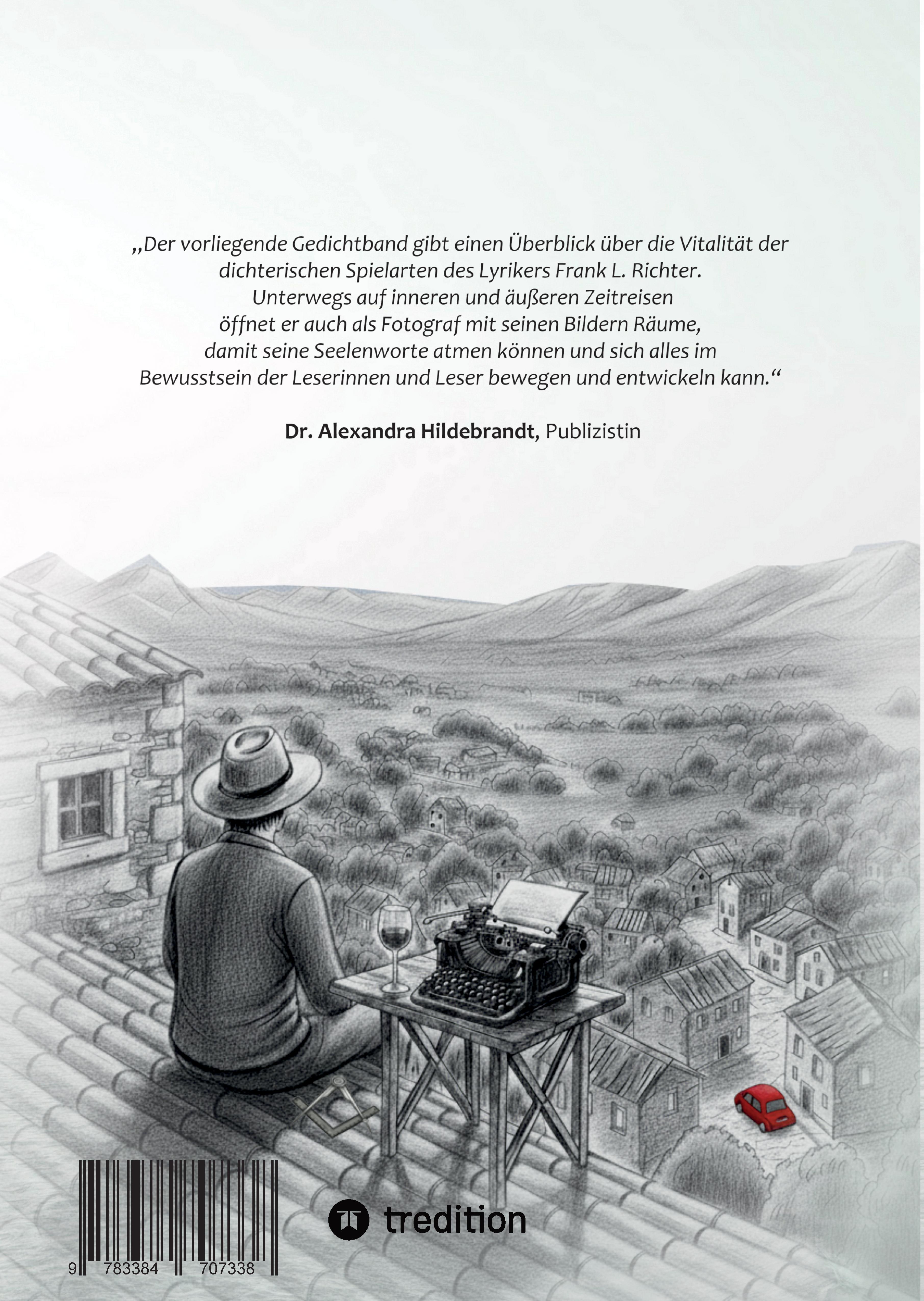 Frank L. Richter (*1979 in Lutherstadt Wittenberg, Vater eines Sohnes) lässt in seiner Liebe zur Lyrik all die Begegnungen, Beobachtungen und Empfindungen einfließen, die ihm auf den suchenden Reisen und findenden Wegen seines L(i)ebens begegnen. Für ihn sind das Miteinander mit Menschen, das tiefe Fühlen und das freie Denken unerschöpfliche Quellen der Inspiration. Als Organisator der Kulturreihe „Kultur im Logenhaus Dessau“ bringt er Literatur, Musik und Menschen zusammen. Zudem ist er Mitgründer der Radiosendung „Landmann liest: Poetische Betrachtungen“. Monatlich steuert er dort seine Rubrik „Lyrisophie“ bei. Seit 2024 ist Frank L. Richter Mitglied der Erich Kästner Gesellschaft e.V.. Gemeinsam mit dem Lyriker Stephan Mörs produzierte er 40 Episoden des Podcasts „Lyrische Bouquets aus dem Glas des Lebens“, in dem beide auf Suche nach der Relevanz von Lyrik in unserer Zeit gehen. Auf Instagram ist er unter seinem Pseudonym „Lyrisoph“ zu finden. Das "L" im Namen ein Zeugnis davon.
