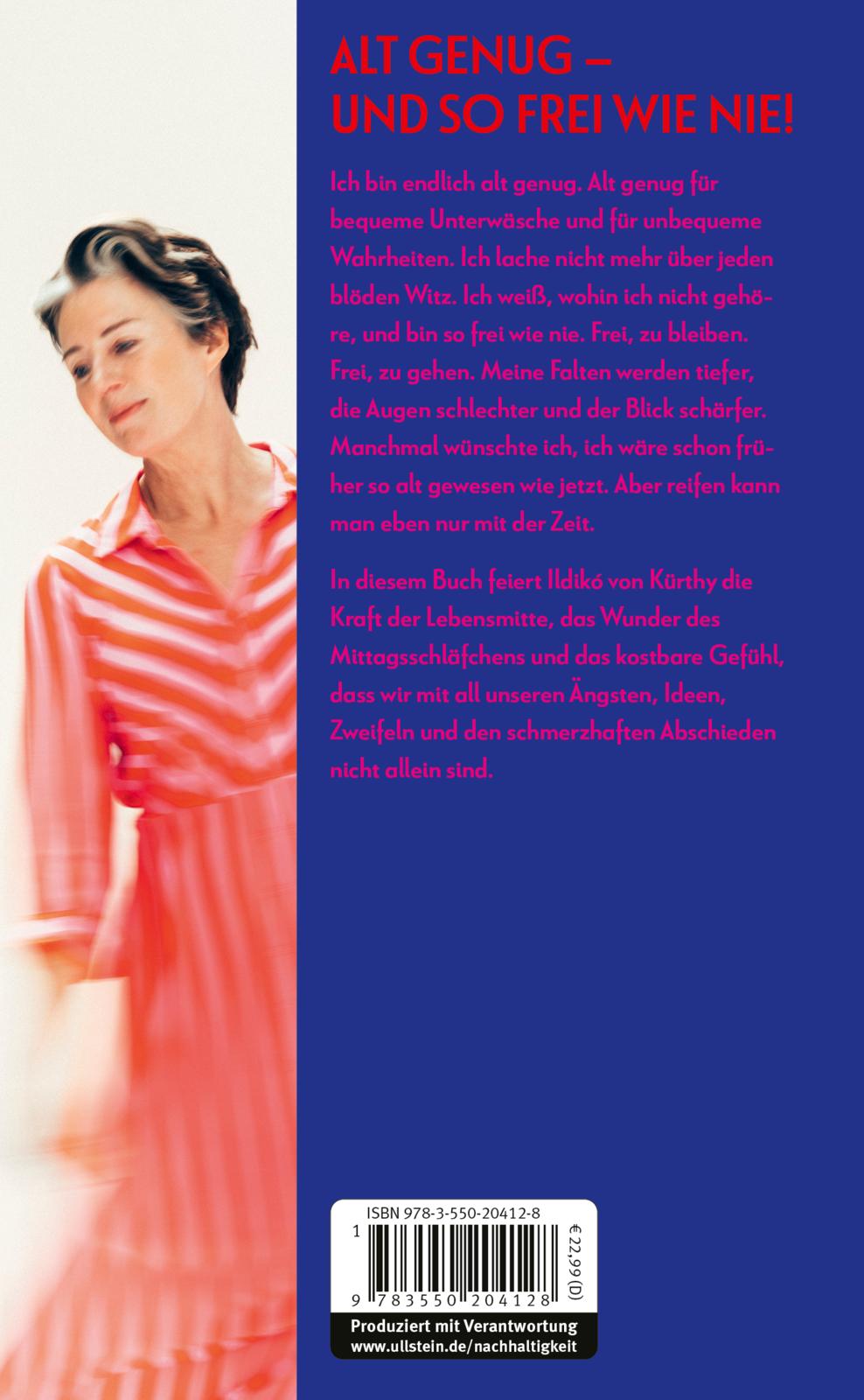 Sie ist endlich alt genug. Alt genug für bequeme Unterwäsche und für unbequeme Wahrheiten. Sie lacht nicht mehr über jeden blöden Witz. Sie weiß, wohin sie nicht gehört und ist so frei wie nie. Frei, zu bleiben. Frei, zu gehen. Manchmal wünscht sie sich , sie wäre schon früher so alt und so mutig gewesen wie jetzt. Aber es hilft ja nichts. Reifen kann man nur mit der Zeit. Auch für dieses Buch musste sie erst alt genug werden: Ildikó von Kürthy hat sich in innere und äußere Ausnahmezustände begeben, hat eine Menge Mut aufgebracht, ist immer wieder gescheitert, hat sich als Topmodel beworben, sich vom Grab ihrer Eltern verabschiedet und ist nachts in New York sich selbst begegnet. In diesem Buch feiert Ildikó von Kürthy die Kraft der Lebensmitte, das Wunder des Mittagsschläfchens und das kostbare Gefühl, dass wir mit all unseren Ängsten, Ideen, Zweifeln, den schmerzhaften Abschieden und der wuchtigen Gleichzeitigkeit von Licht und Schatten nicht alleine sind.